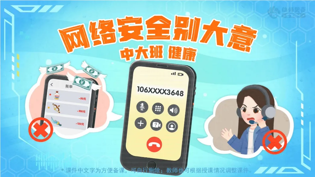 幼儿园中大班-健康-《网络安全别大意》PPT+教案+纸面教具分享