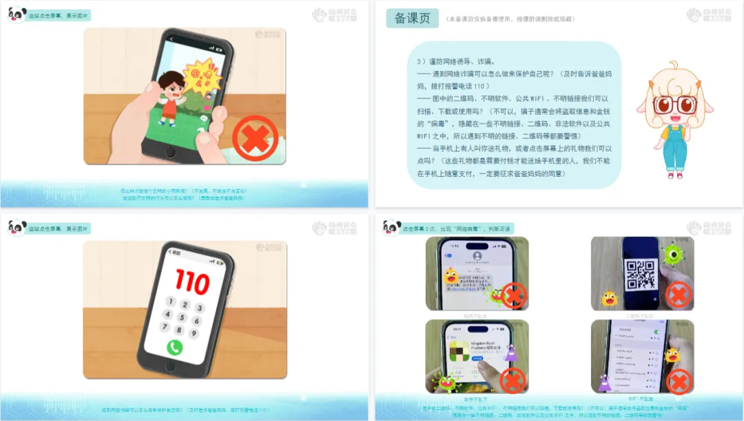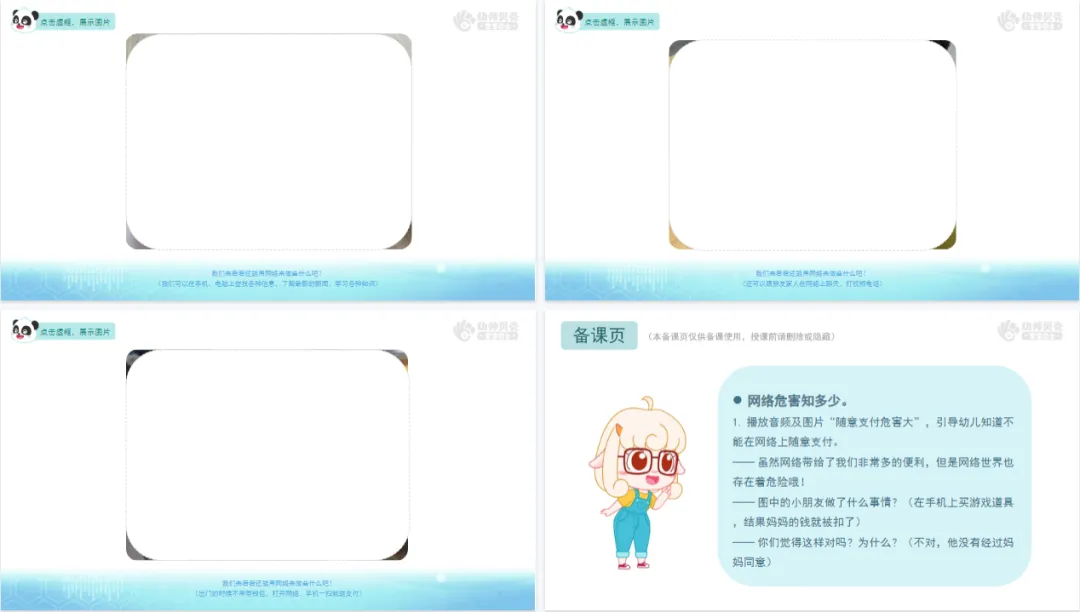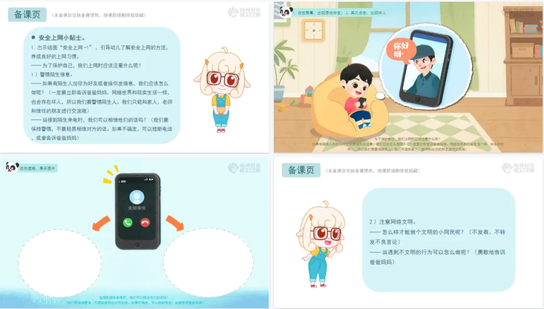 >幼儿园中大班-健康-《网络安全别大意》PPT+教案+纸面教具分享