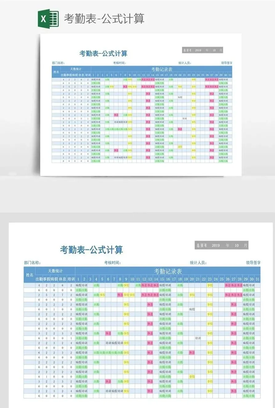 直接给你上“王炸”——一套 “颜值与实力并存”的自动计算考勤表模板。你只需要填空,剩下的,交给公式。