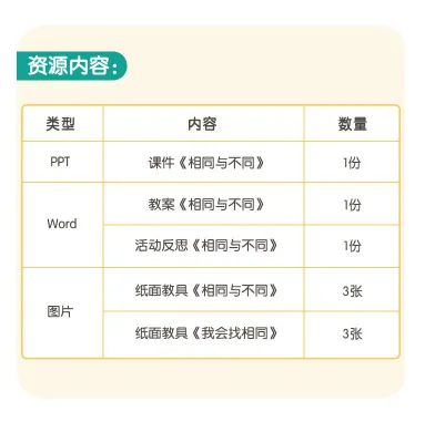>幼儿园小中班-数学-《相同与不同》PPT+教案+活动反思+纸面教具共享