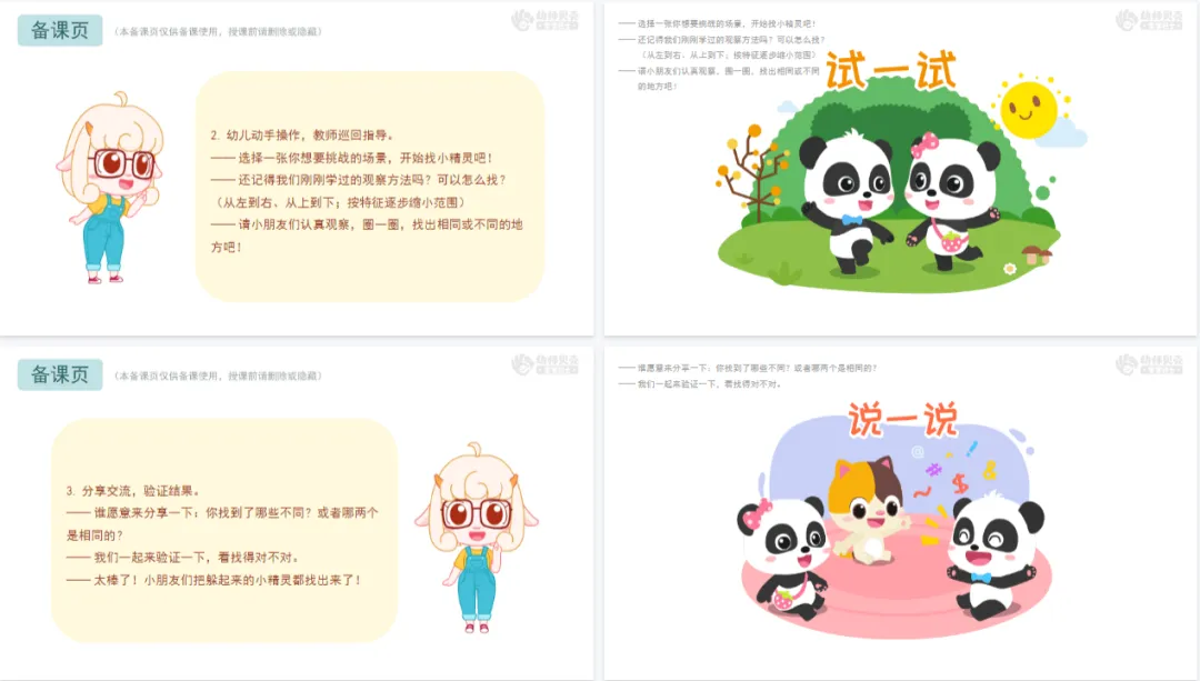 幼儿园小中班-数学-《相同与不同》PPT+教案+活动反思+纸面教具共享