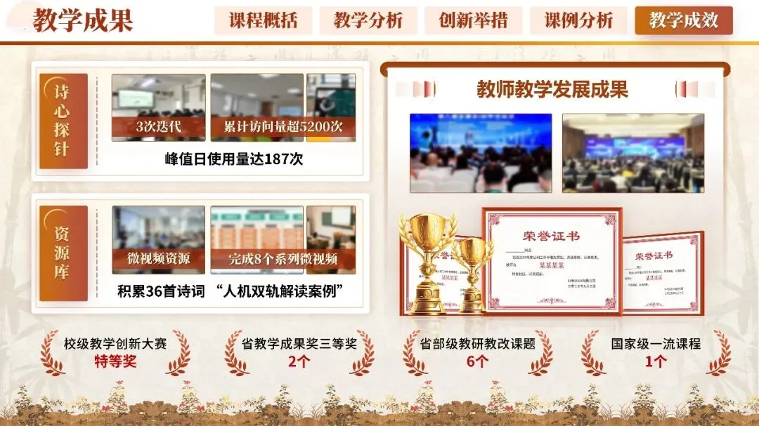 3.团队优势整合文学、计算机科学、教育学等多学科背景教师,形成“诗词专家+数据工程师+教学设计者”协同教研团队。团队成员主持多项省部级教改与科研项目,具备跨学科课程开发与实施的丰富经验,保障教学创新的科学性与可推广性。