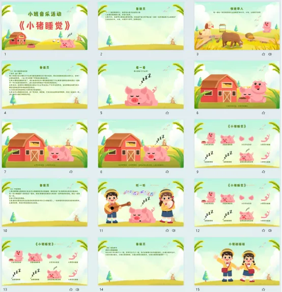 学唱歌曲《小猪睡觉》,创编动作,边唱边表演。