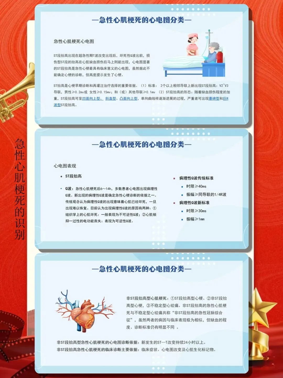 急性心肌梗死(AMI)是急性冠脉综合征(ACS)中最严重的类型,其救治时效性直接决定患者预后。早期识别与快速诊断是改善预后的关键环节。根据《第四版心肌梗死通用定义(2018年ESC/ACC/AHA/WHF联合发布)》《2025 ACC/AHA/ACEP/NAEMSP/SCAI急性冠脉综合征管理指南》及《急性心肌梗死诊断与治疗指南(2025年版)》等最新标准,本文系统梳理急性心肌梗死早期识别的核心要点,助力临床医护人员提升诊断效率。一、定义与分类标准