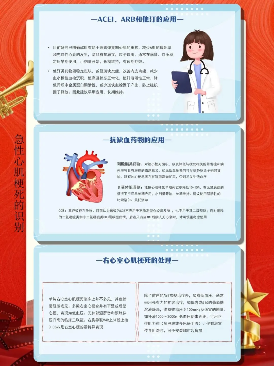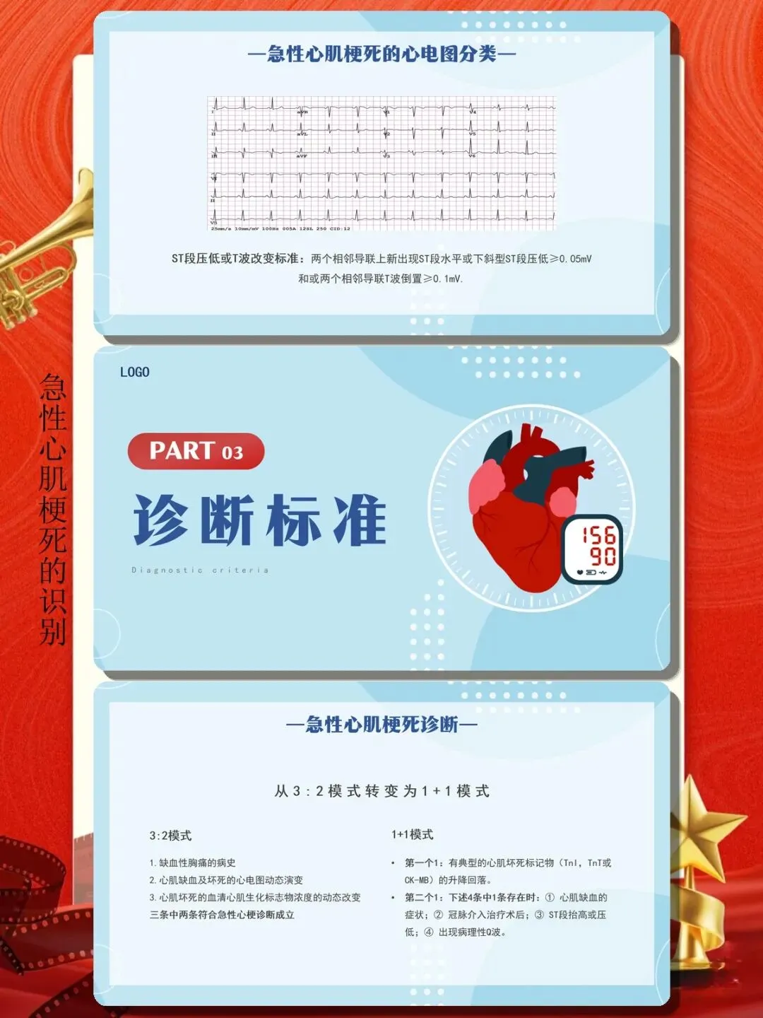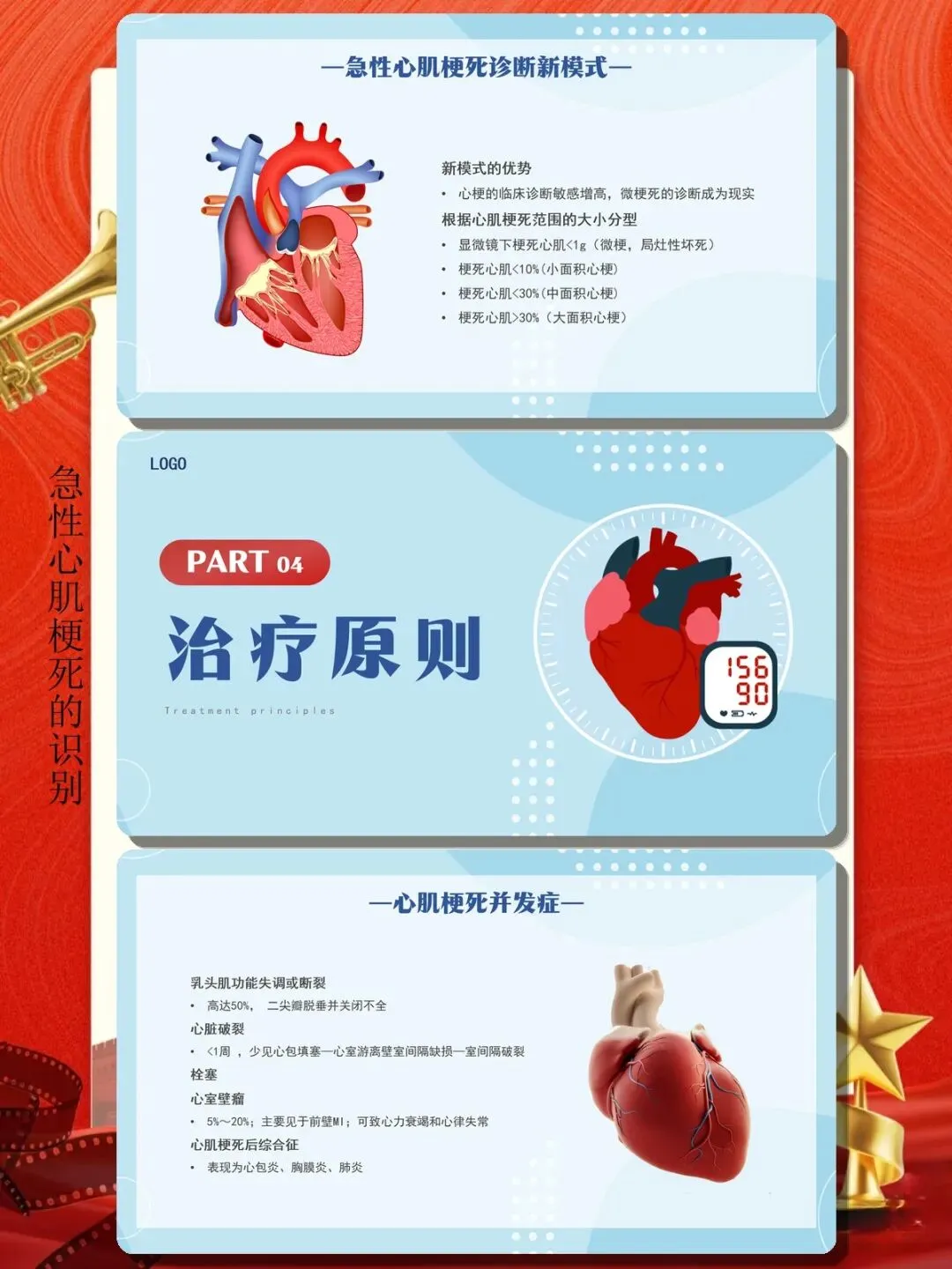 特殊部位心梗需加做导联:后壁心梗需加做V7-V9导联(ST抬高≥0.5mm);右室心梗需结合V3R-V4R导联ST抬高,提示右冠近端闭塞。下壁心梗应常规加做右胸导联,评估右室受累情况。
