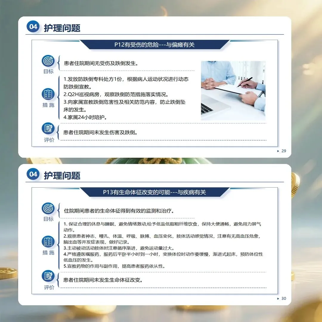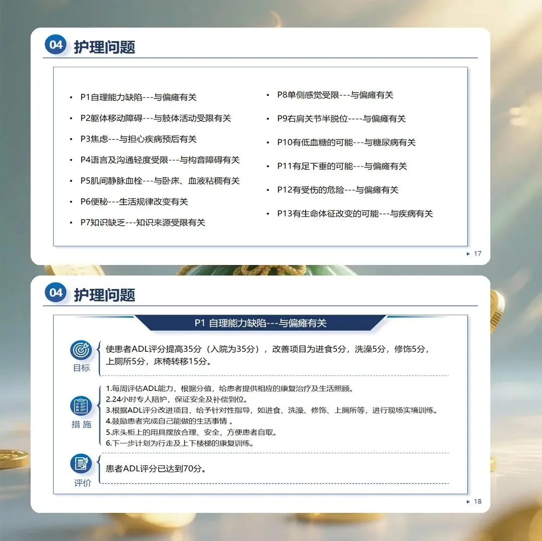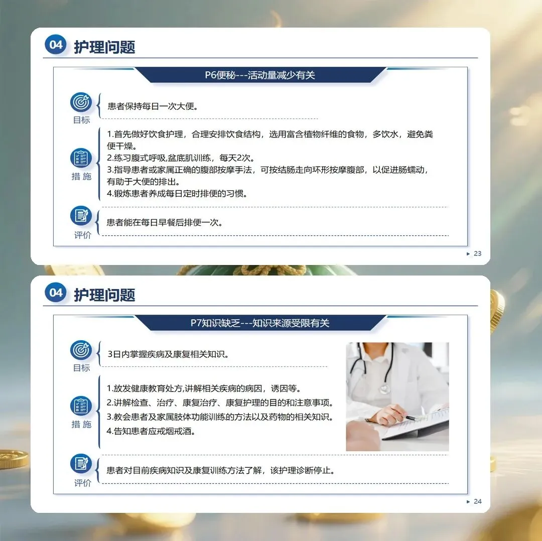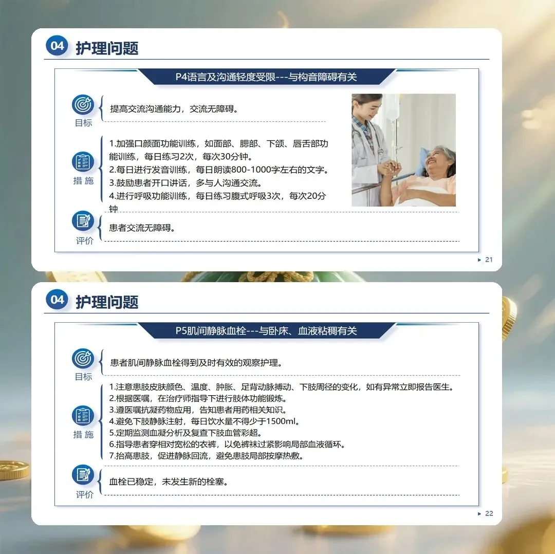 脑梗死护理查房通过系统的病例分析,帮助护理人员整合理论知识与临床实践,提升专科护理能力。从全面评估到精准诊断,从个体化干预到持续改进,护理查房是护理质量提升的重要载体。让我们在查房实践中不断学习与反思,用专业守护患者的康复之路。