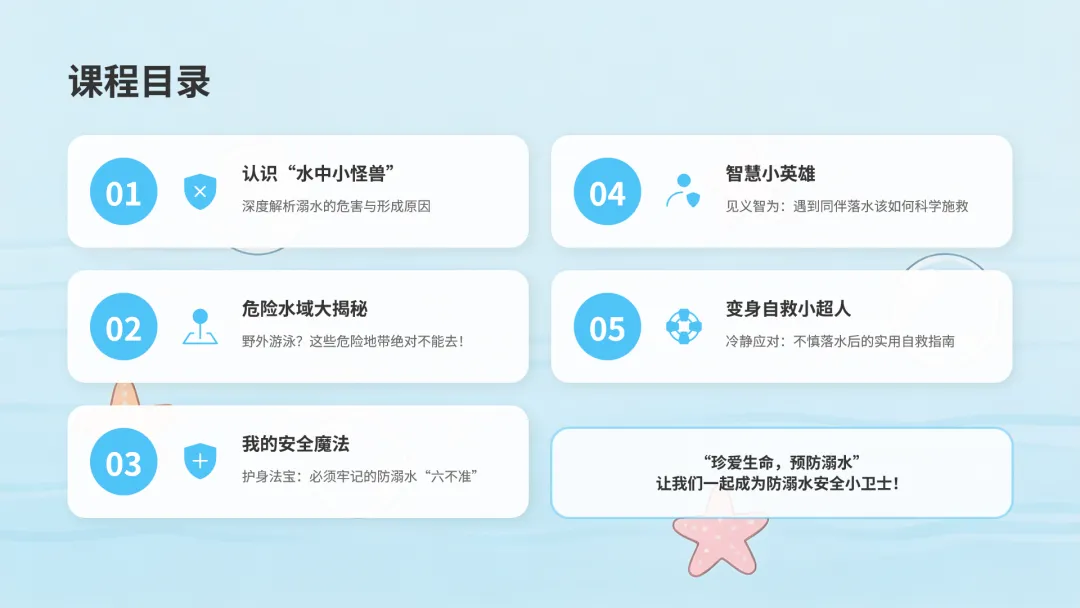 五一假期安全教育/防溺水教育PPT模板,AI生成,免费分享