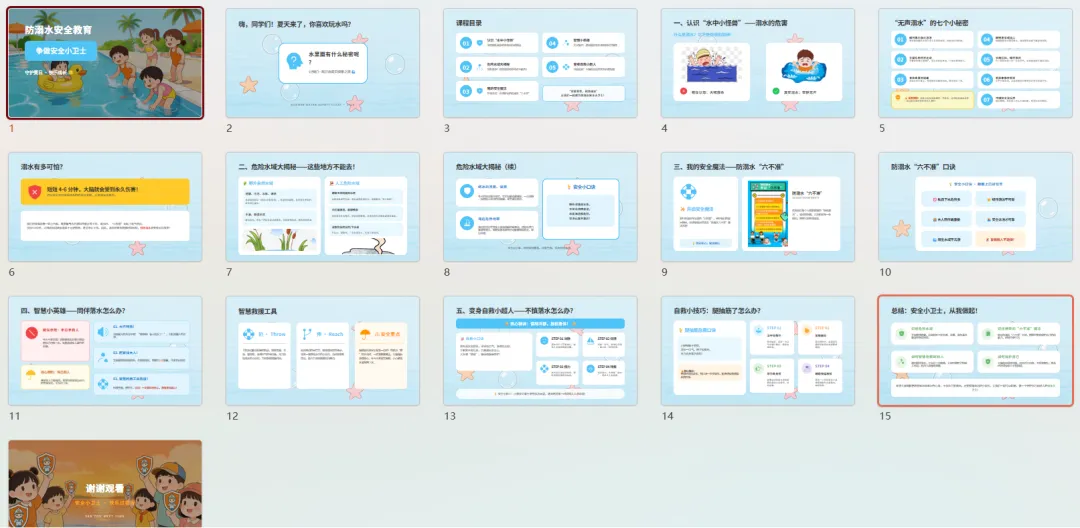五一假期马上快到了,用 AI 生成了两套五一假期安全教育/防溺水教育的 PPT 模板,来看看你需要不?