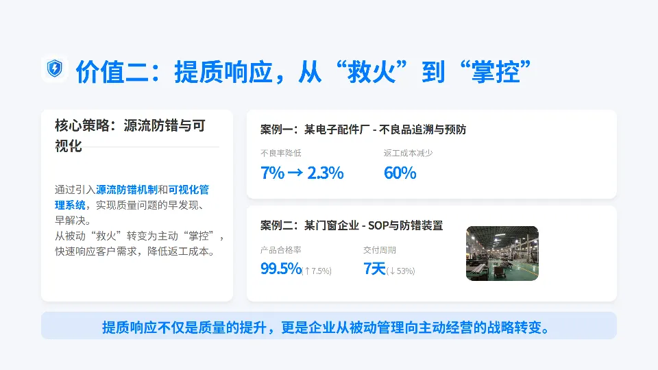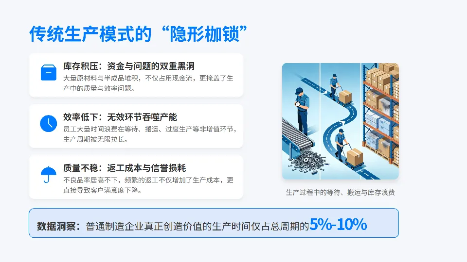 精益生产作为一种以客户需求为导向,通过消除浪费、流程优化和持续改善来提升企业竞争力的管理模式,为制造业提供了全新的思路和解决方案。它不仅能帮助企业显著降低成本、提升质量、加快响应速度,更能通过文化赋能激活员工智慧,构建可持续的核心竞争力。