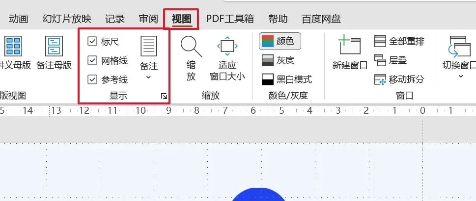 在【视图】选项卡的“显示”组中,勾选打开“标尺”、“网格线”和“参考线”,它们能为页面元素提供精准的视觉对齐基准,帮助你轻松实现视觉平衡。