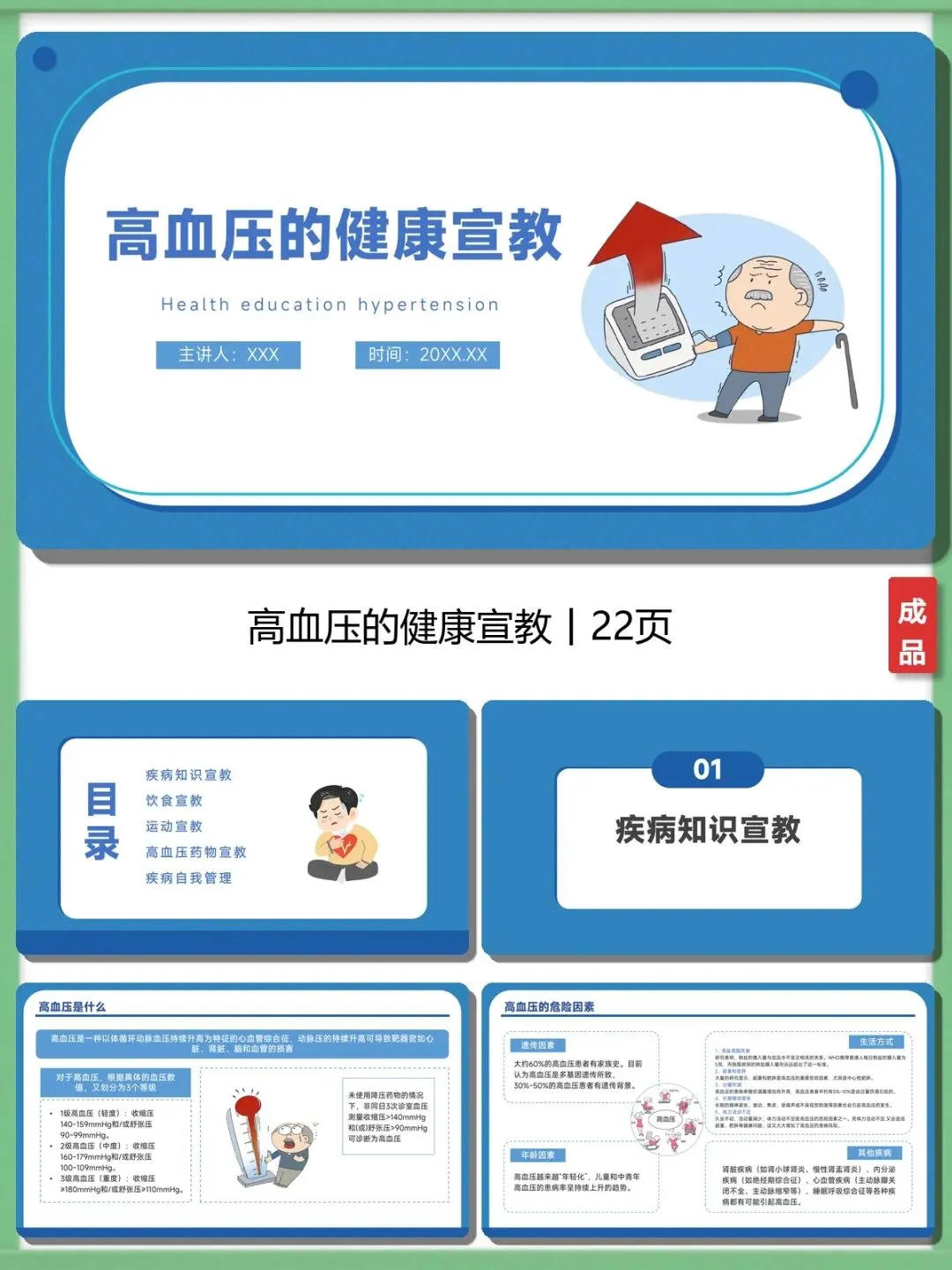 >高血压健康宣教ppt模板,共22页(附演讲稿)
