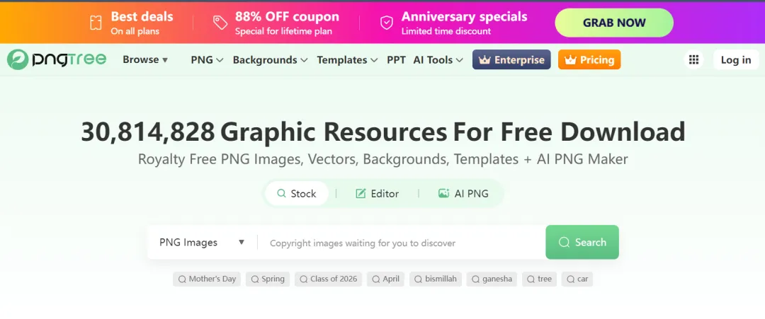 特点:海量透明背景元素,PNG、矢量图、背景模板一应俱全适合场景:拼贴、合成、七巧板风格的图形组合注意:每日有免费下载限额(注册用户约2-5张/天),可累积🔗 https://pngtree.com/