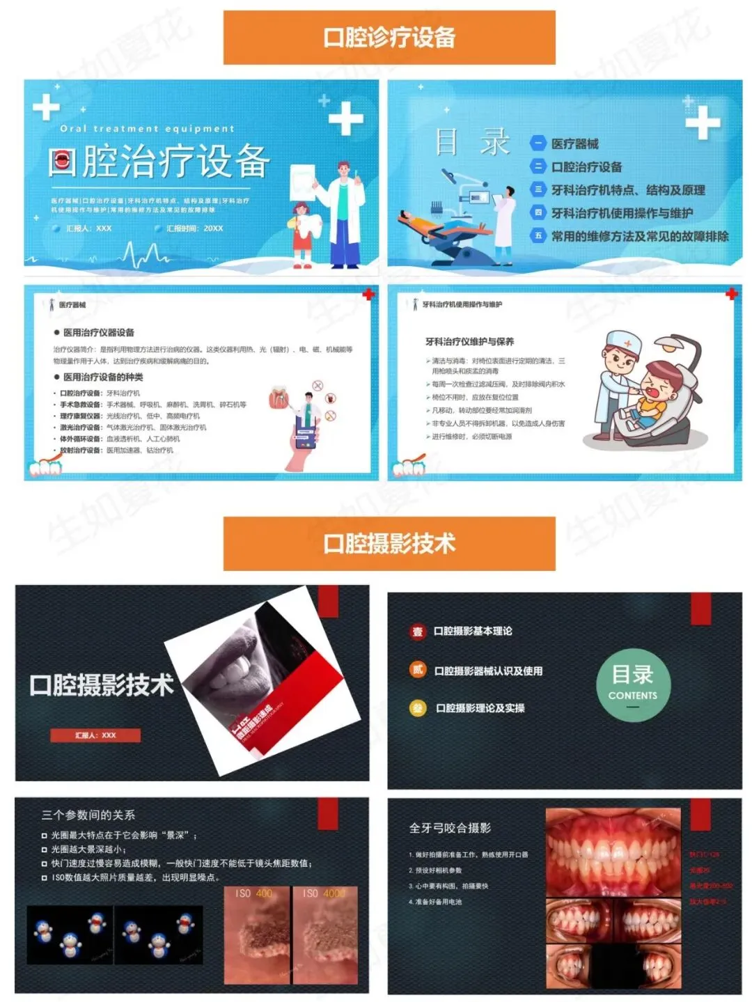 403 口腔摄影技术口内相机的使用技巧、参数设置、拍摄角度标准(口内照、面像照),满足病历记录和美学修复需求。