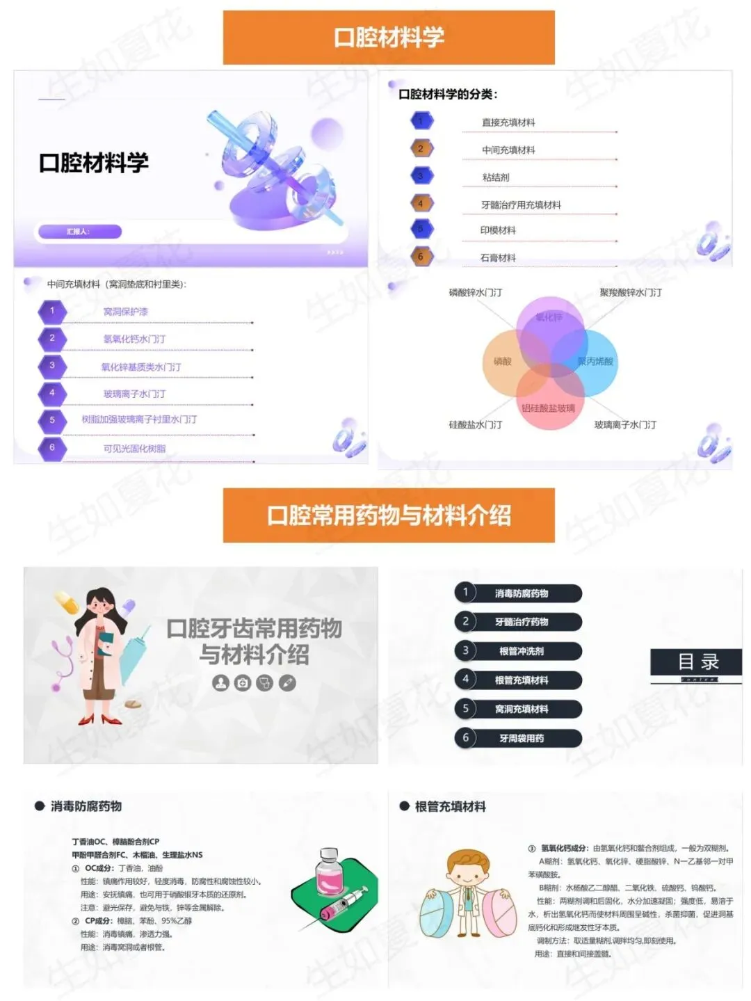 406 口腔牙齿常用药物与材料介绍丁香酚、FC、氢氧化钙、次氯酸钠等常用药物的用途、注意事项、储存方法,安全使用无差错。