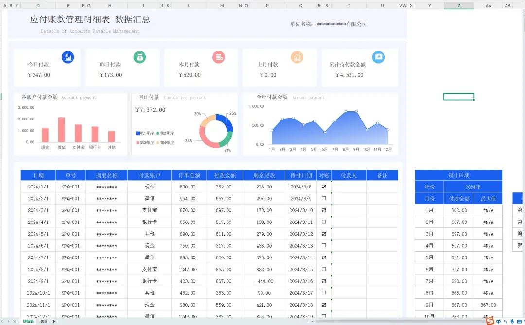 发现一套好用的,全自动Excel应付账款明细表模板,财务套用,自动生成应付账款报表!
