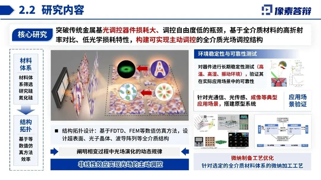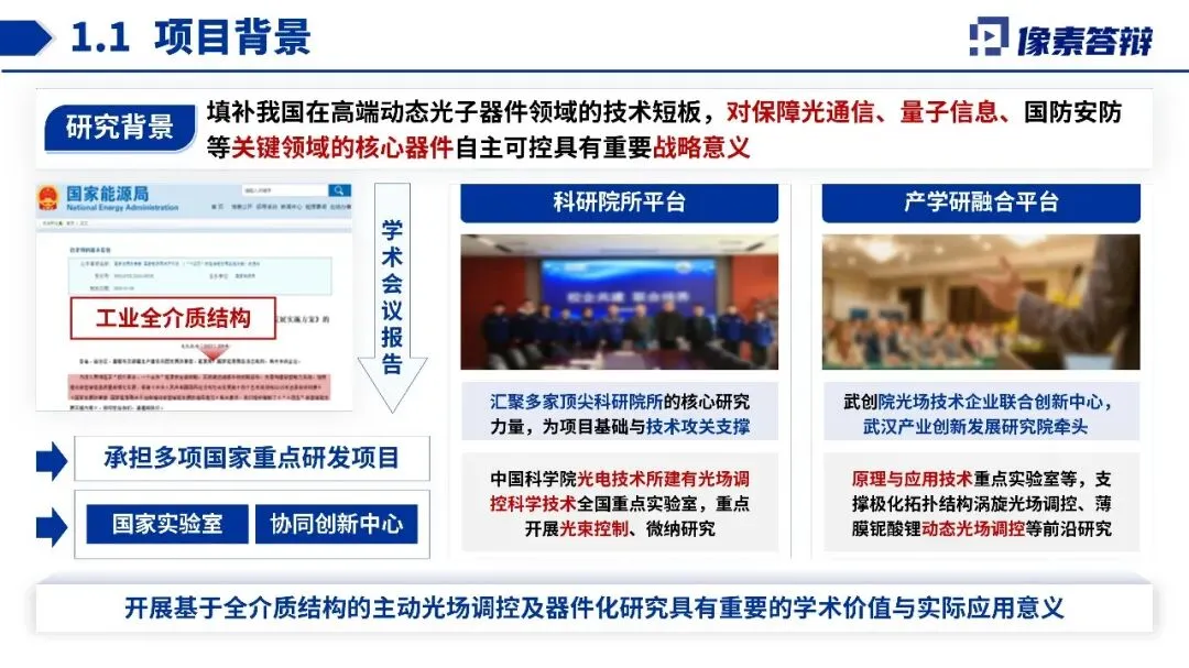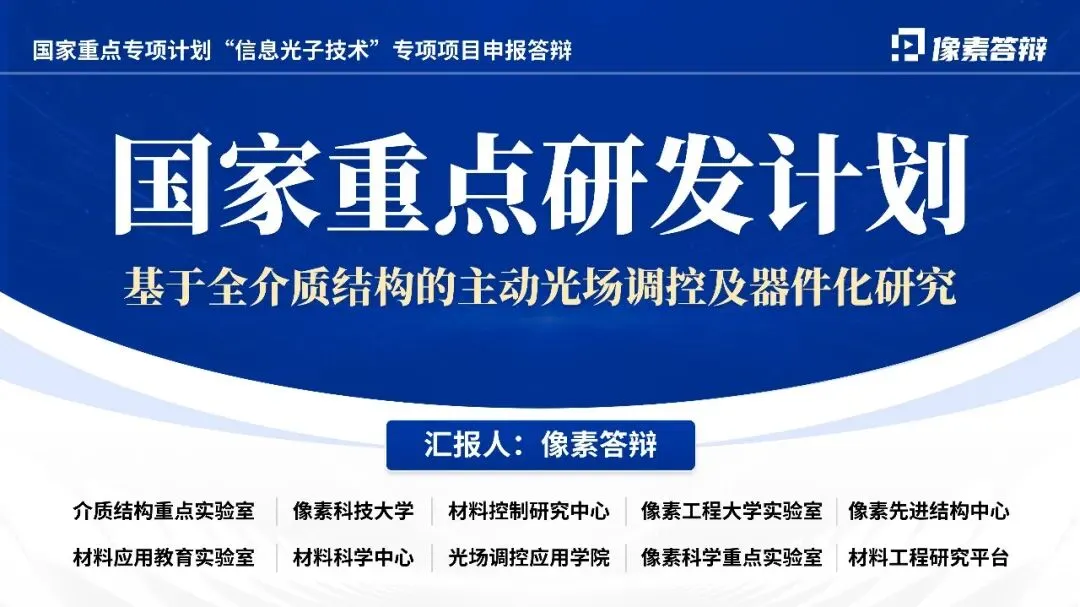 本项目是国家重点研发计划信息光子技术专项申报项目,聚焦全介质结构主动光场调控及器件化研究,旨在补齐我国高端动态光子器件技术短板,保障光通信等关键领域核心器件自主可控,依托多平台和顶尖团队搭建完整研发体系,兼具战略与应用价值。