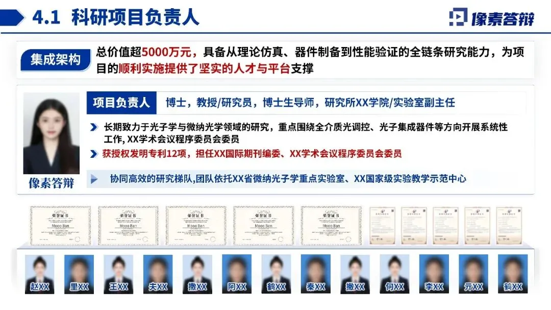 PPT专业性较强,框架完整、逻辑清晰,紧扣申报要求,突出项目战略价值与技术创新,团队和平台支撑充分。但存在内容重复、部分风险描述模糊、配图与文字关联性弱的问题,排版稍显杂乱,影响信息传递效率。