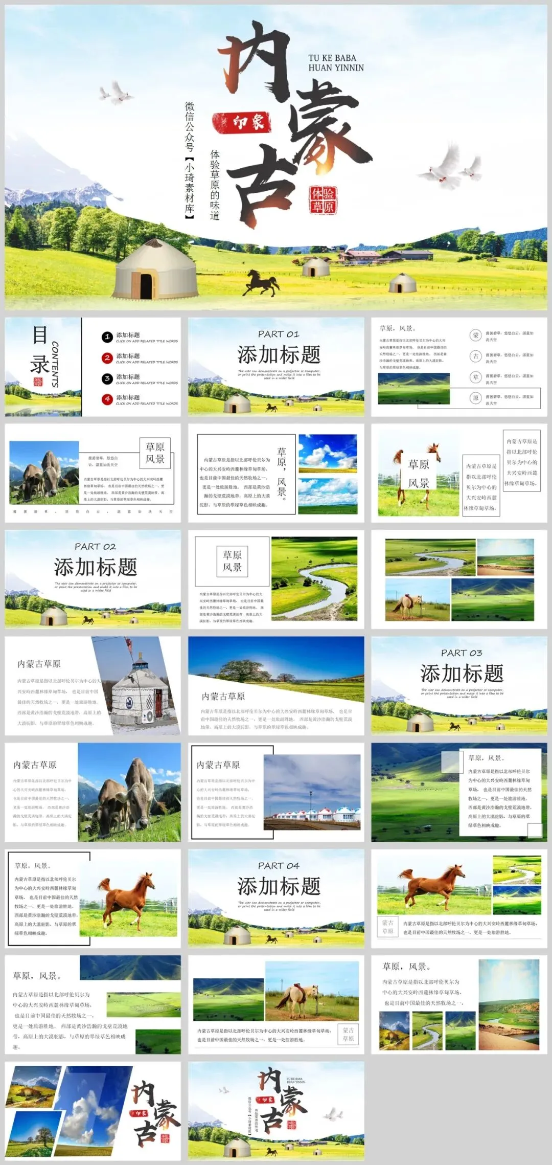 最近小伙伴说还需要点内蒙古主题的PPT