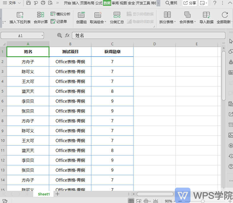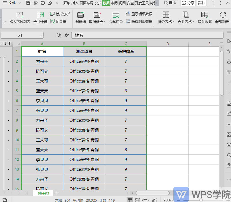 因为是要对获得勋章的数目进行汇总计算,所以汇总项选择“获得勋章”。