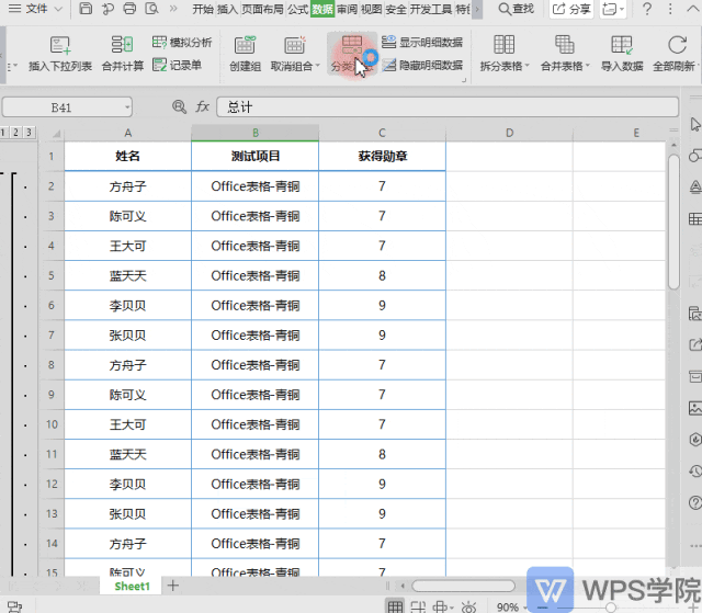 首先,要先对测试项目进行排序,这一步是必要的,否则分类汇总可能出错。