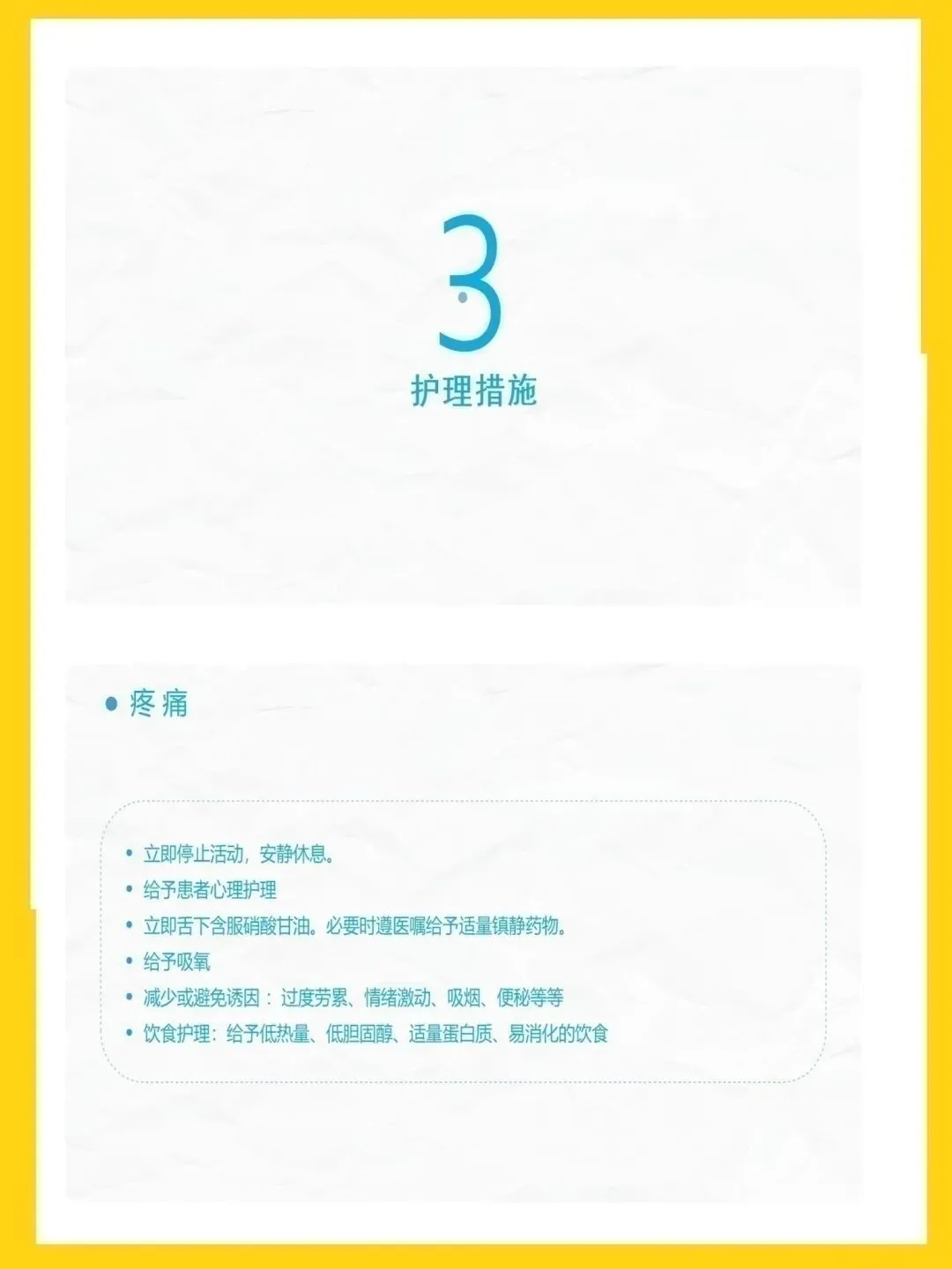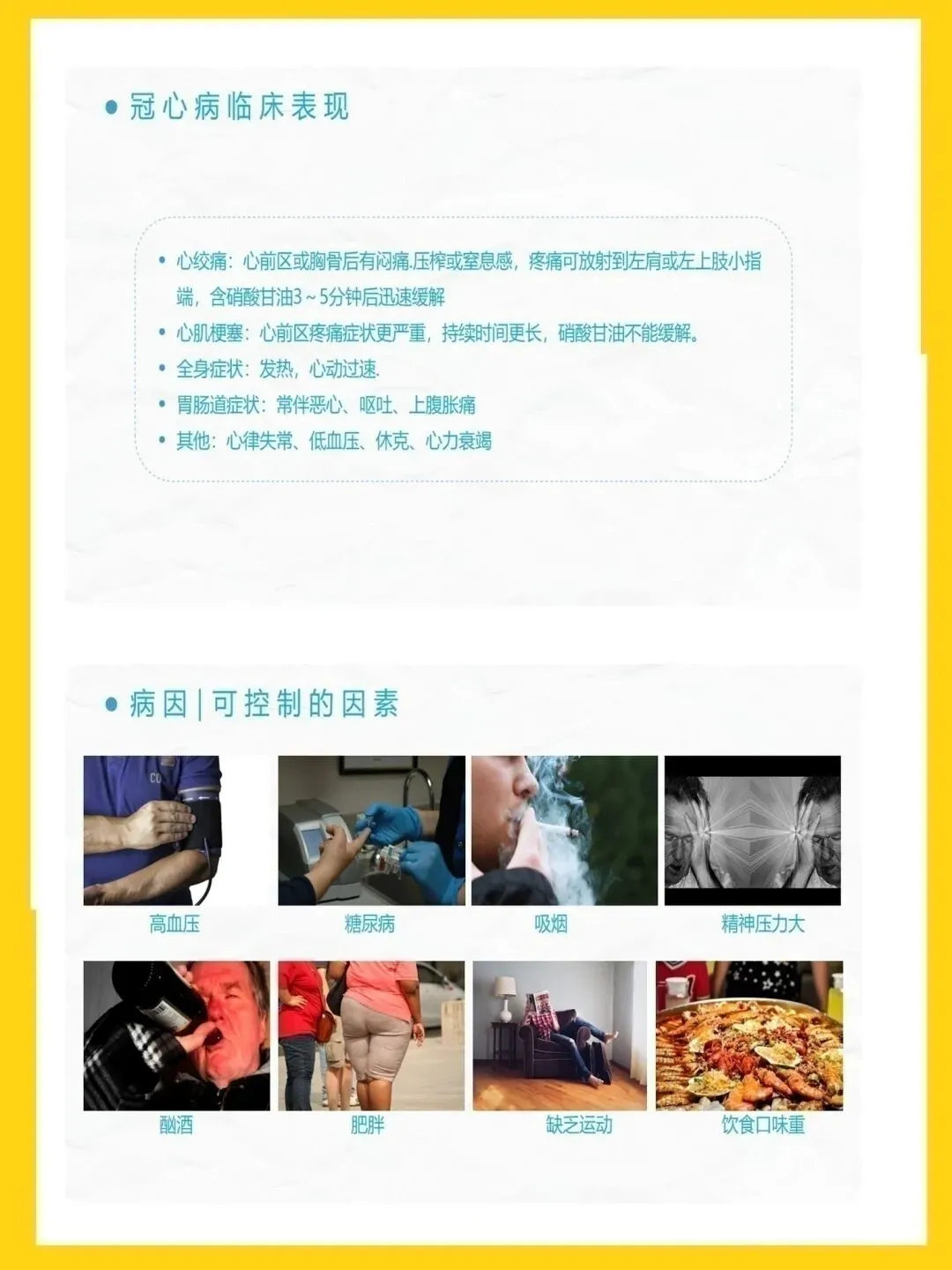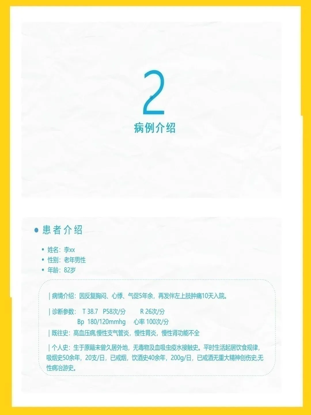 冠心病是冠状动脉粥样硬化致管腔狭窄或阻塞,引发心肌缺血缺氧的心脏病,主要表现为心绞痛与心肌梗死,高血压、吸烟等为可控危险因素。本次查房患者为82岁男性,因胸闷心悸气促入院,诊断为冠心病、高血压3级极高危、痛风等,伴心房颤动、肾功能不全,病情复杂且高危。针对患者病情,我们重点实施疼痛护理、心理干预与活动指导,加强皮肤与排便管理,预防并发症,改善心肌供氧,提升患者舒适度与安全性。健康宣教以低盐低脂饮食、戒烟限酒、适度运动为核心,指导患者合理用药、自我监测与应急处理,帮助建立健康生活方式。出院后需规律服药、定期复查,随身携带急救药物,警惕胸痛等症状,出现不适及时就医,降低疾病复发与加重风险。本次护理查房汇报完毕,感谢大家聆听,敬请批评指正。