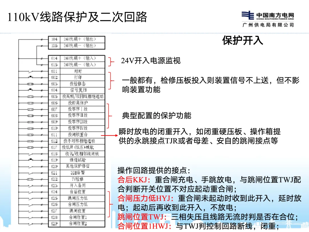 开入OPT:功能压板、按钮把手开入、操作回路提供的开入,其他屏柜至本装置的开入等;