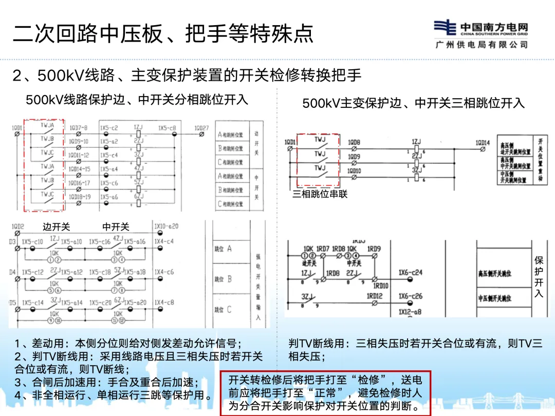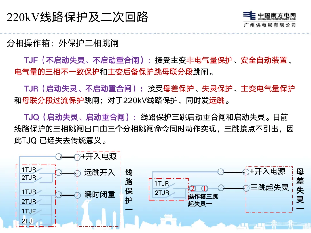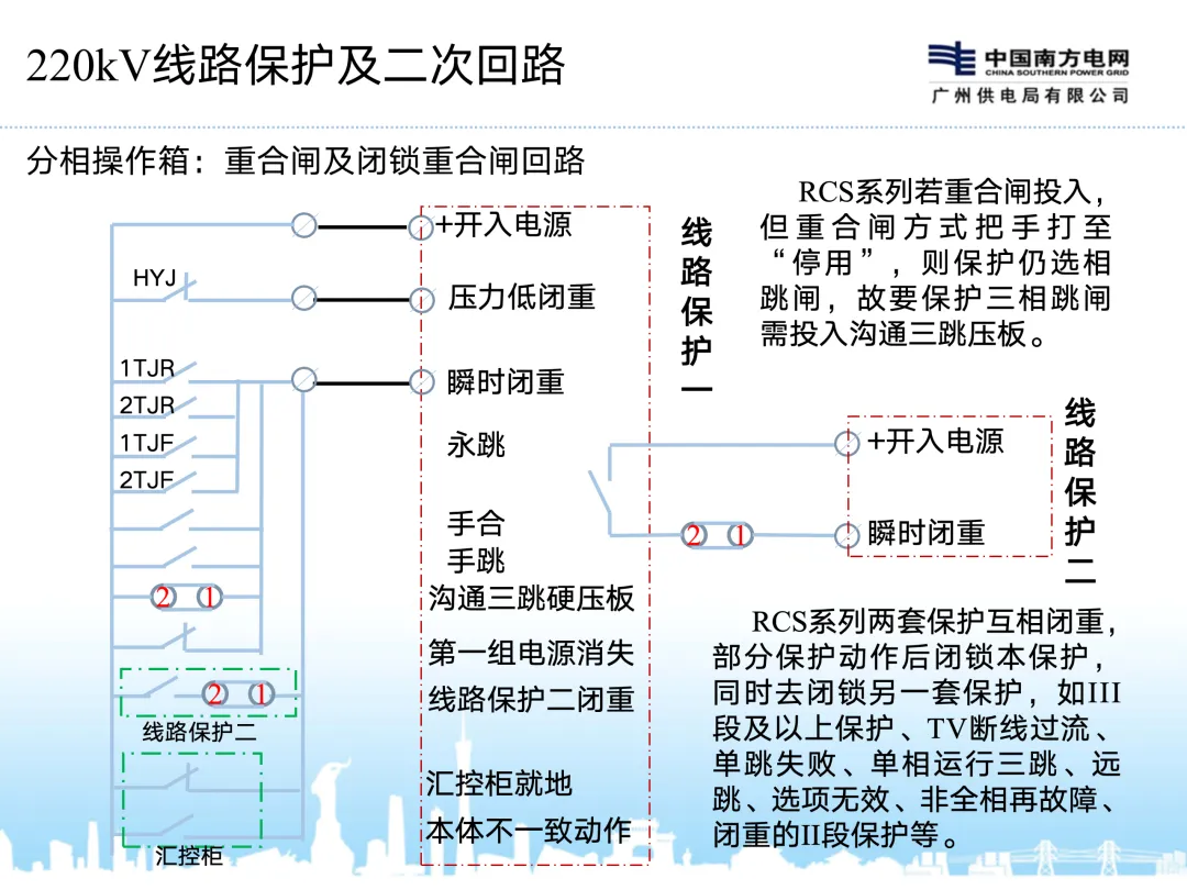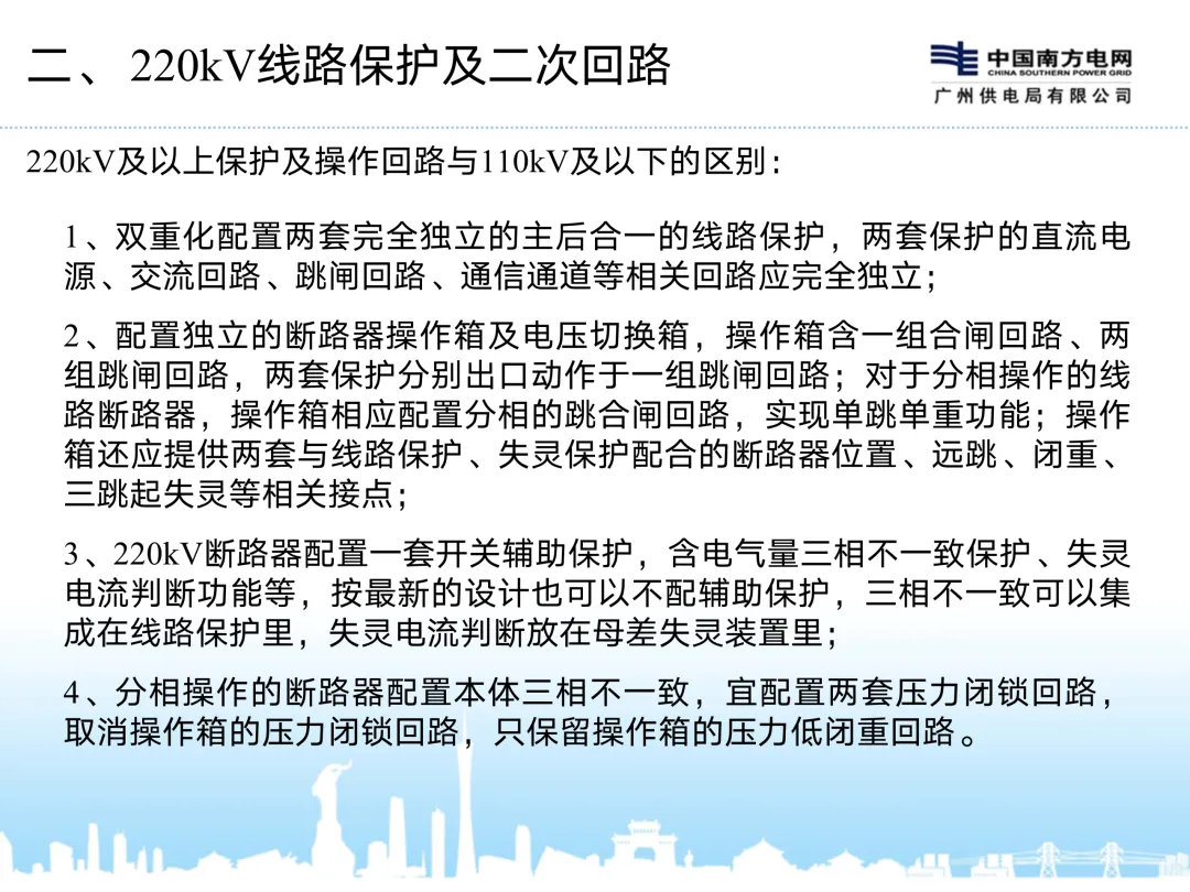 220kV及以上保护及操作回路与110kV及以下的区别: