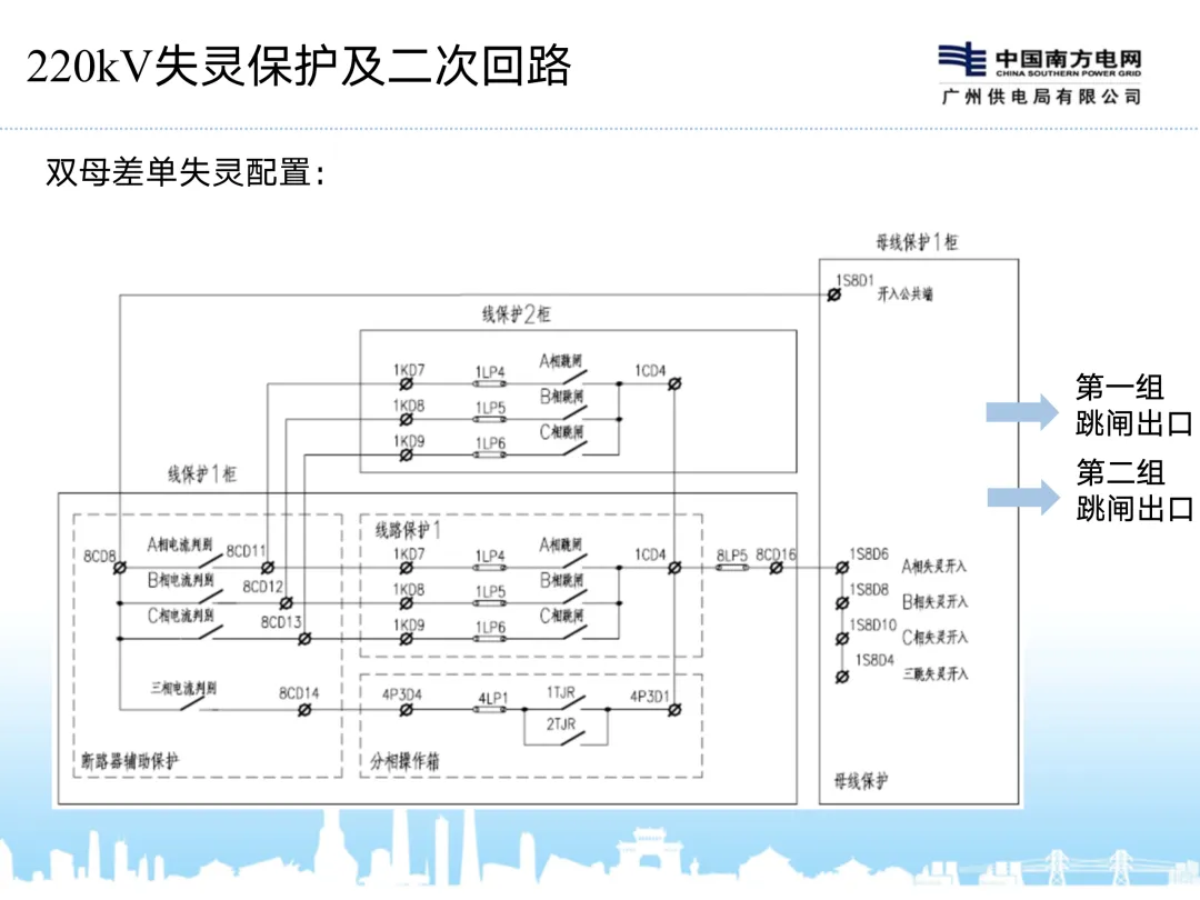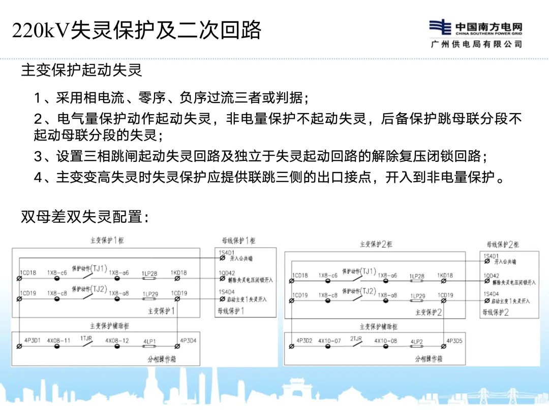 4、最新的双母差双失灵配置,电流判据放在失灵保护中,两套失灵保护与两套支一对应,且分别动作于一组跳闸回路。路保护一