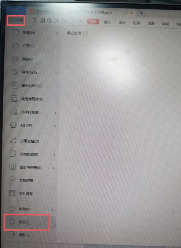 1.点击文件,再点击【选项】