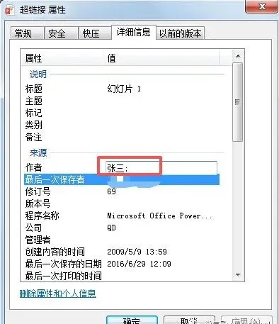 3. 找到【作者】这一行,直接点击后面的空白/原有名字,输入新的作者名