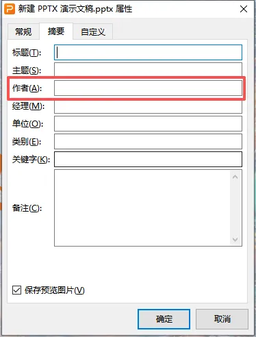 2. 点击【摘要】,可以编辑作者及其他信息,点击确定即可。