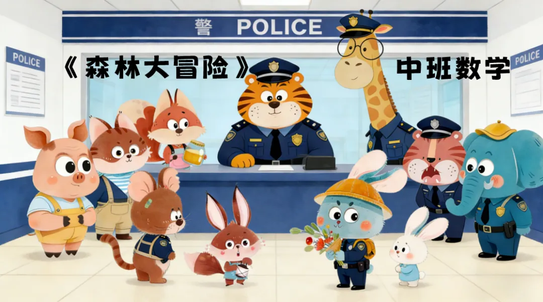 师:小朋友们,今天森林小镇里发生了一件紧急的事情,听,小镇的居民正慌张地跑到警局报案呢,我们一起来听听发生了什么。