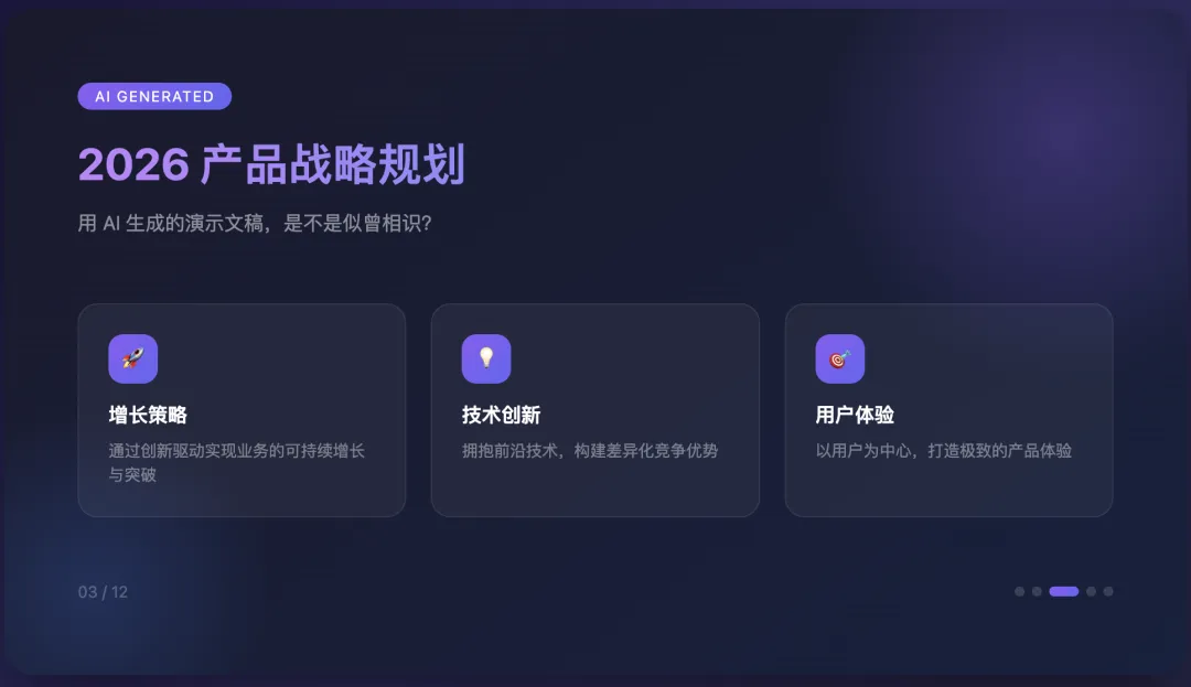但凡你有过使用 Agent 生成网页版 PPT 的经历,你肯定见过那个“熟悉的配方,熟悉的味道”。大圆角卡片、蓝紫主色。没错,这就是那个著名的 “AI 紫”。去年至今见了多少次这样的 PPT 已经记不清了,但看多了,真的有点审美疲劳。