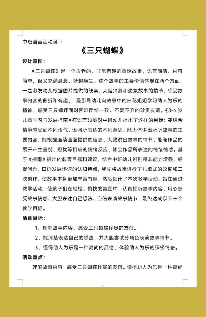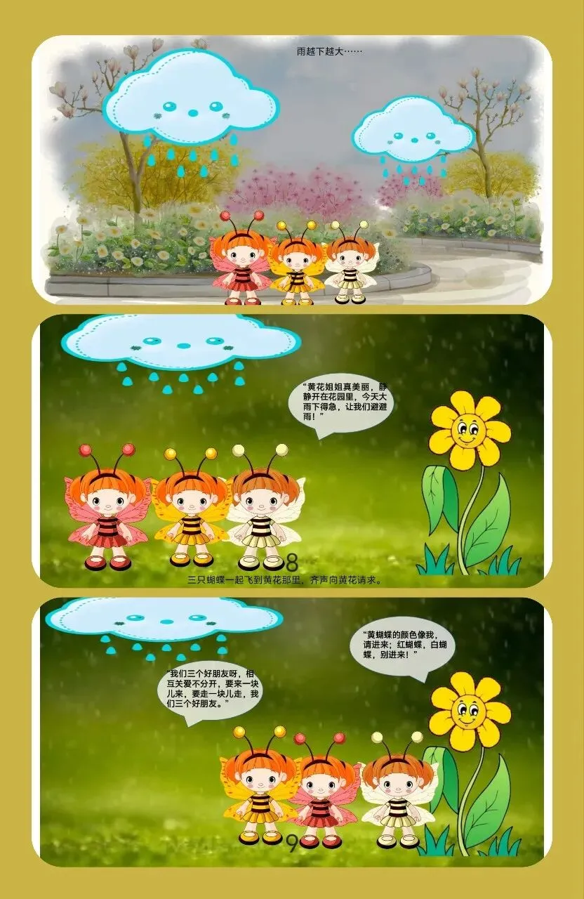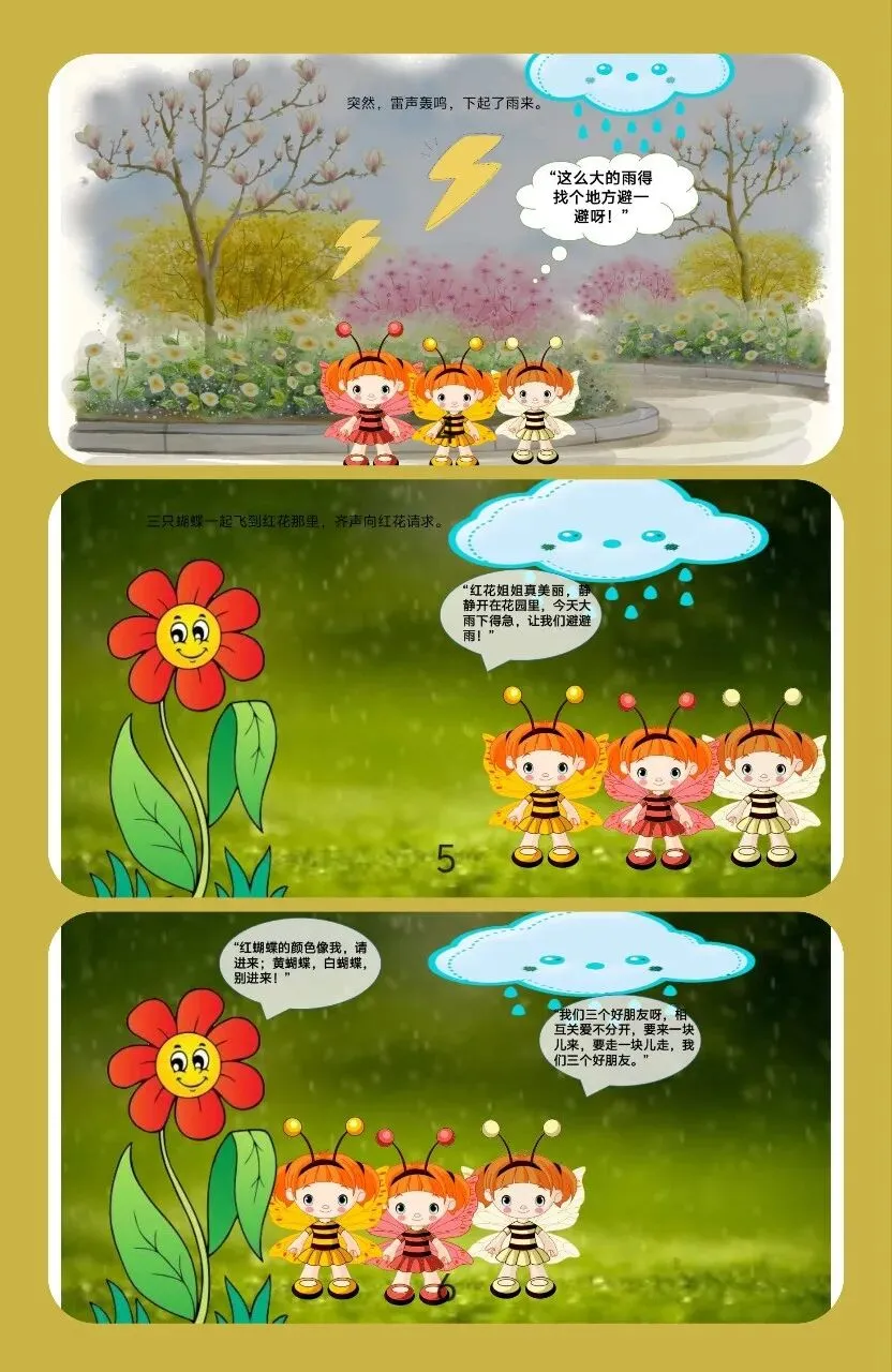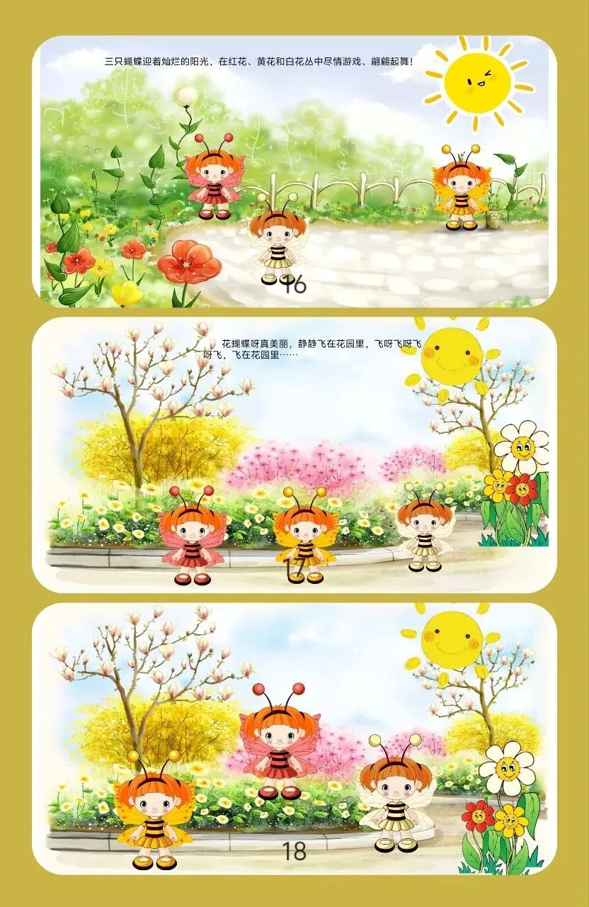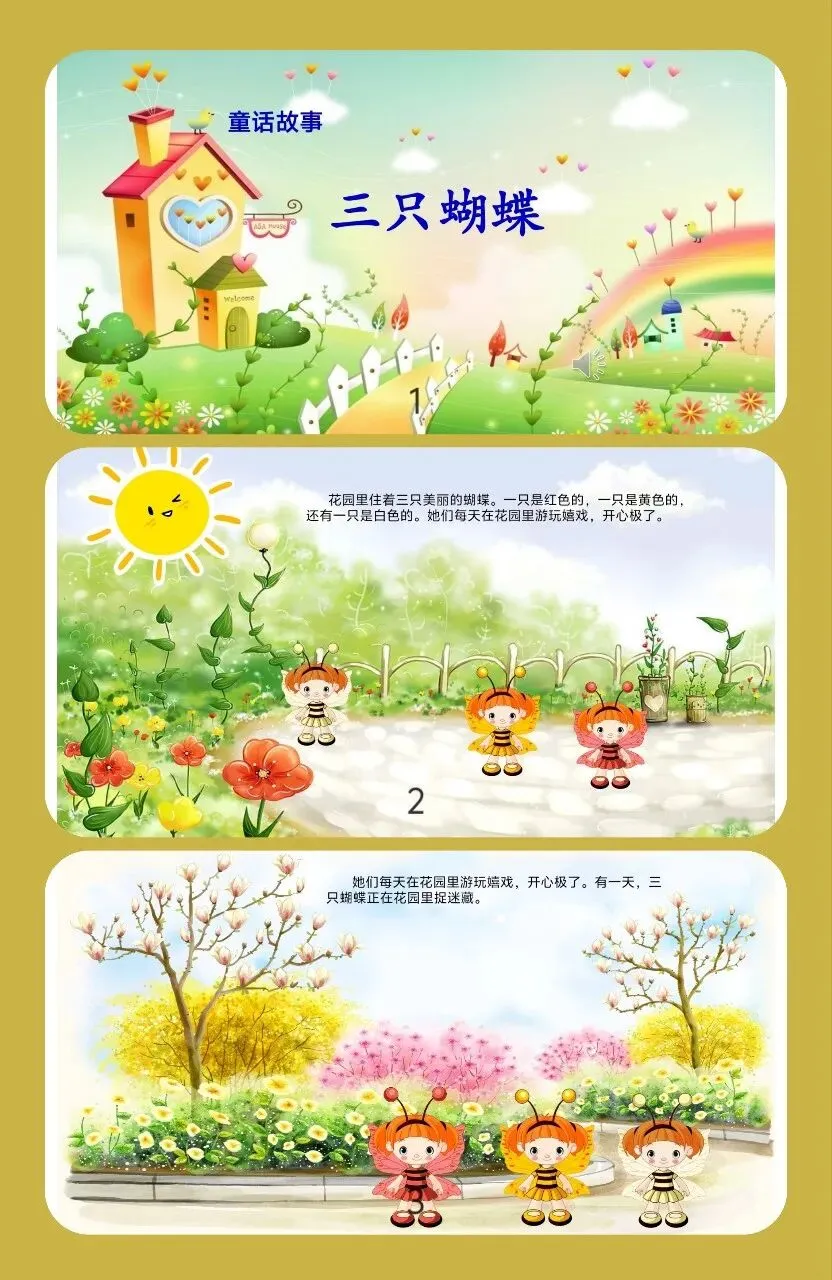 🦋中班语言活动《三只蝴蝶》设计来啦!在美丽的童话里感受友谊的温暖,让孩子们学会团结与互助~