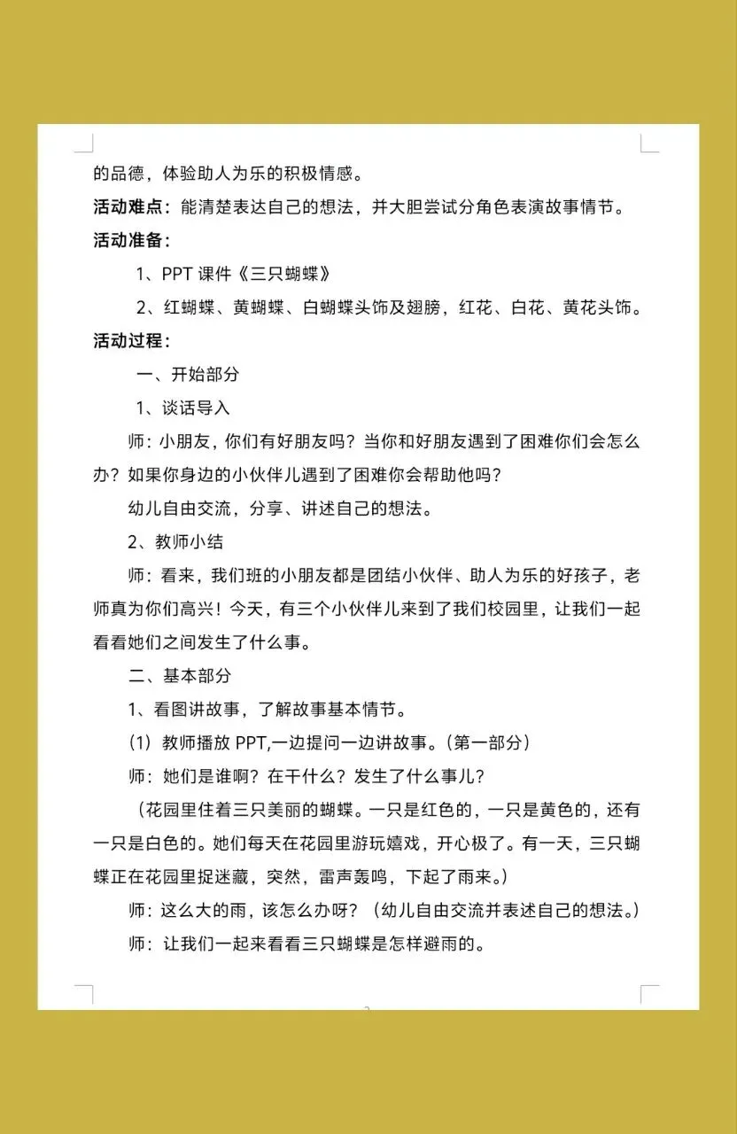 1、理解故事内容,感受三只蝴蝶珍贵的友谊。