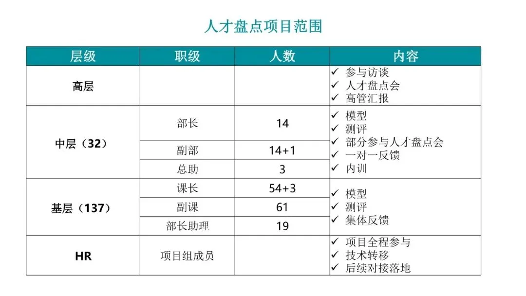 3. 全面覆盖原则:兼顾各部门、各层级、各岗位,既关注核心管理层、技术骨干,也重视基层骨干及潜力员工;