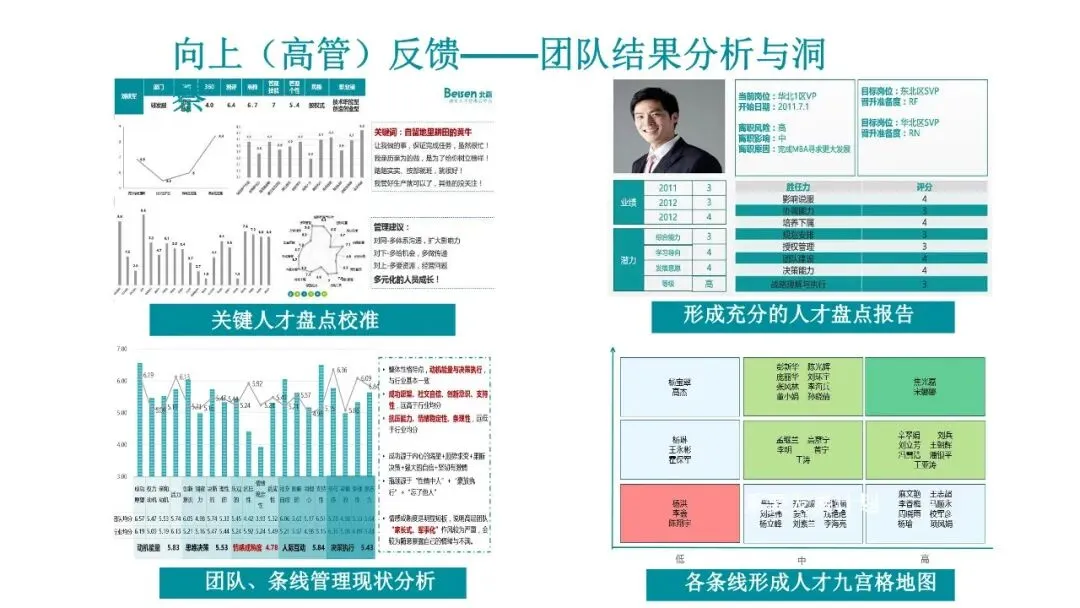 1. 数据分类分析:执行小组对盘点数据进行分类分析,包括人才数量分析、结构分析(年龄、学历、职级、部门分布)、绩效分析、能力分析、潜力分析、关键岗位人才分析等;