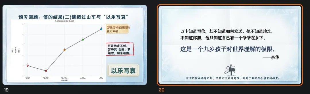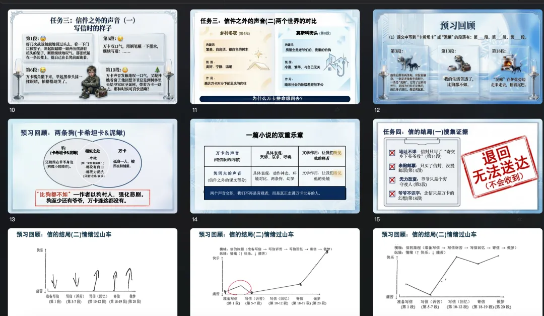 横轴:信的旅程(准备写信→ 写信诉苦 → 写信回忆 → 寄信 → 做梦)