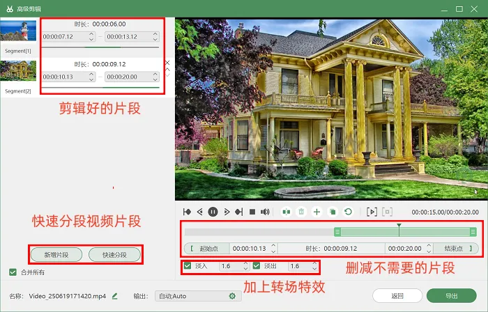 步骤3:录制结束后,有优化需求的用户可点击记录页面下方的【高级剪辑】,为视频添加动画特效、进行分段处理,以此提升视频导出质量。