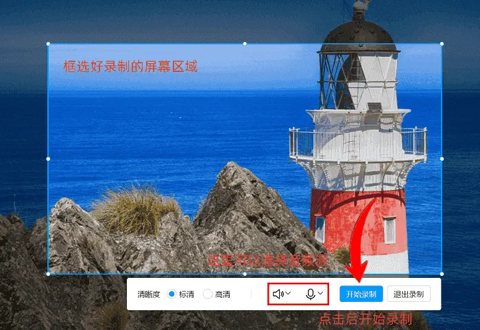 在正式录制前,务必根据录制内容选择声音来源:若要录制从电脑扬声器播放的声音,就开启“系统声音”;若需同时录入自己的语音旁白,则要打开“麦克风”。