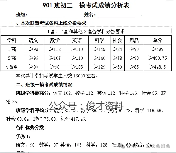 >初三下一模质量分析家长会ppt:一路同行,同心筑梦.含讲稿、成绩分析表