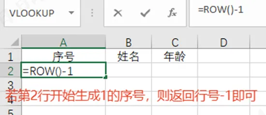 1、公式:=ROW(),返回当前单元格所在行号。