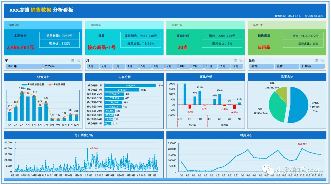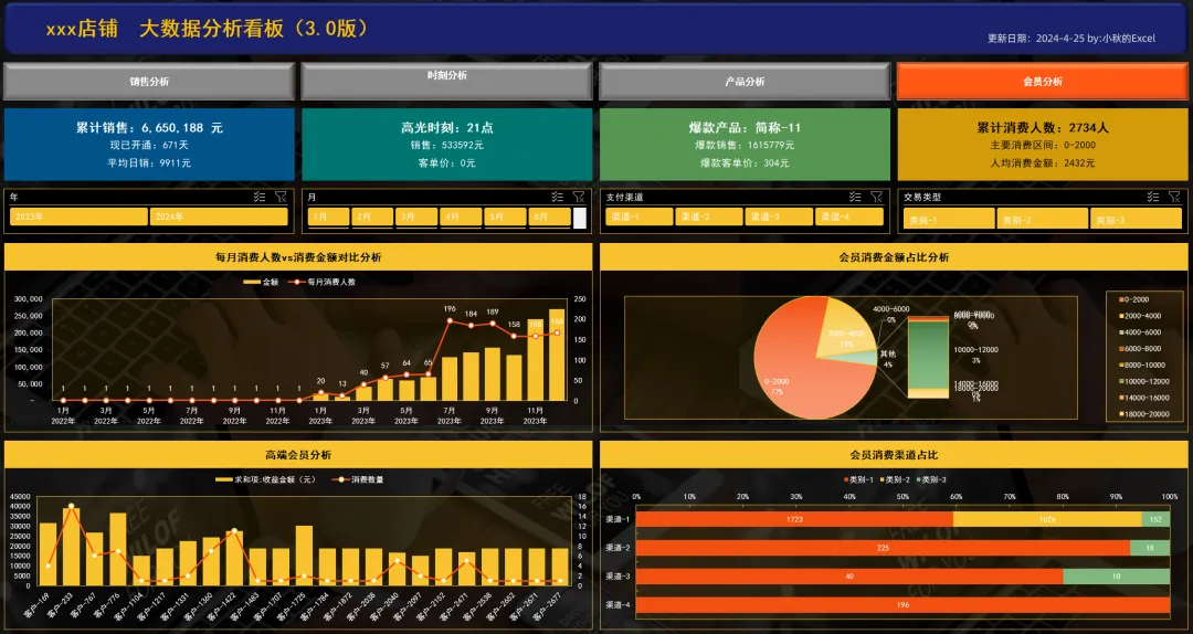 ,若能搭建出一份高颜值的动态分析看板,之后只要添加数据,就可以刷新分析,或许就会轻松很多。大数据时代,Excel绝不仅仅是一份表格工具,Excel还可以帮到我们很多。如何运用Excel技巧,搭建出可视化的大屏分析看板?希望【大数据】系列可以帮到你,只为#陪你一起悄悄变强大