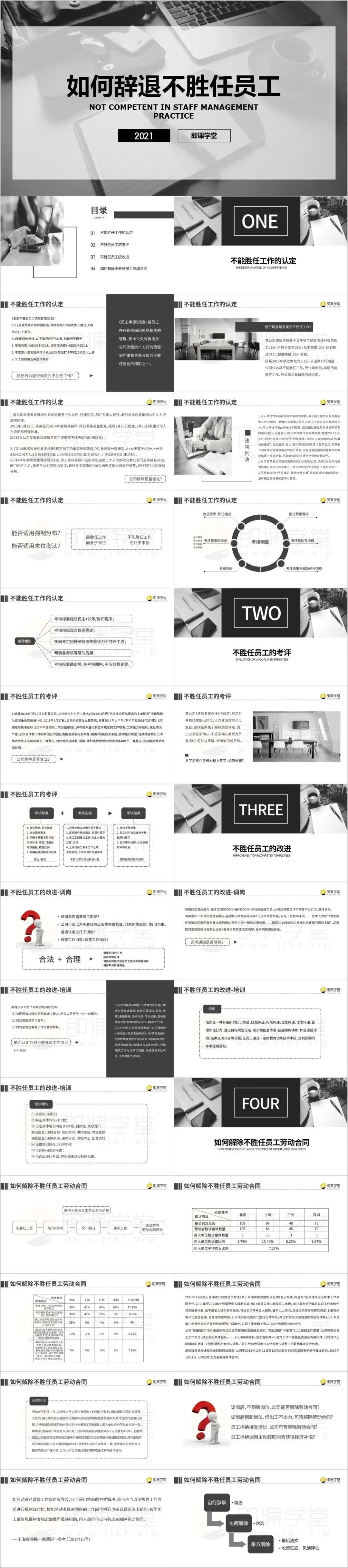 2套不胜任工作辞退PPT,内容完整,制作精美,适合自学以及内部培训使用。部分PPT截图展示如下: