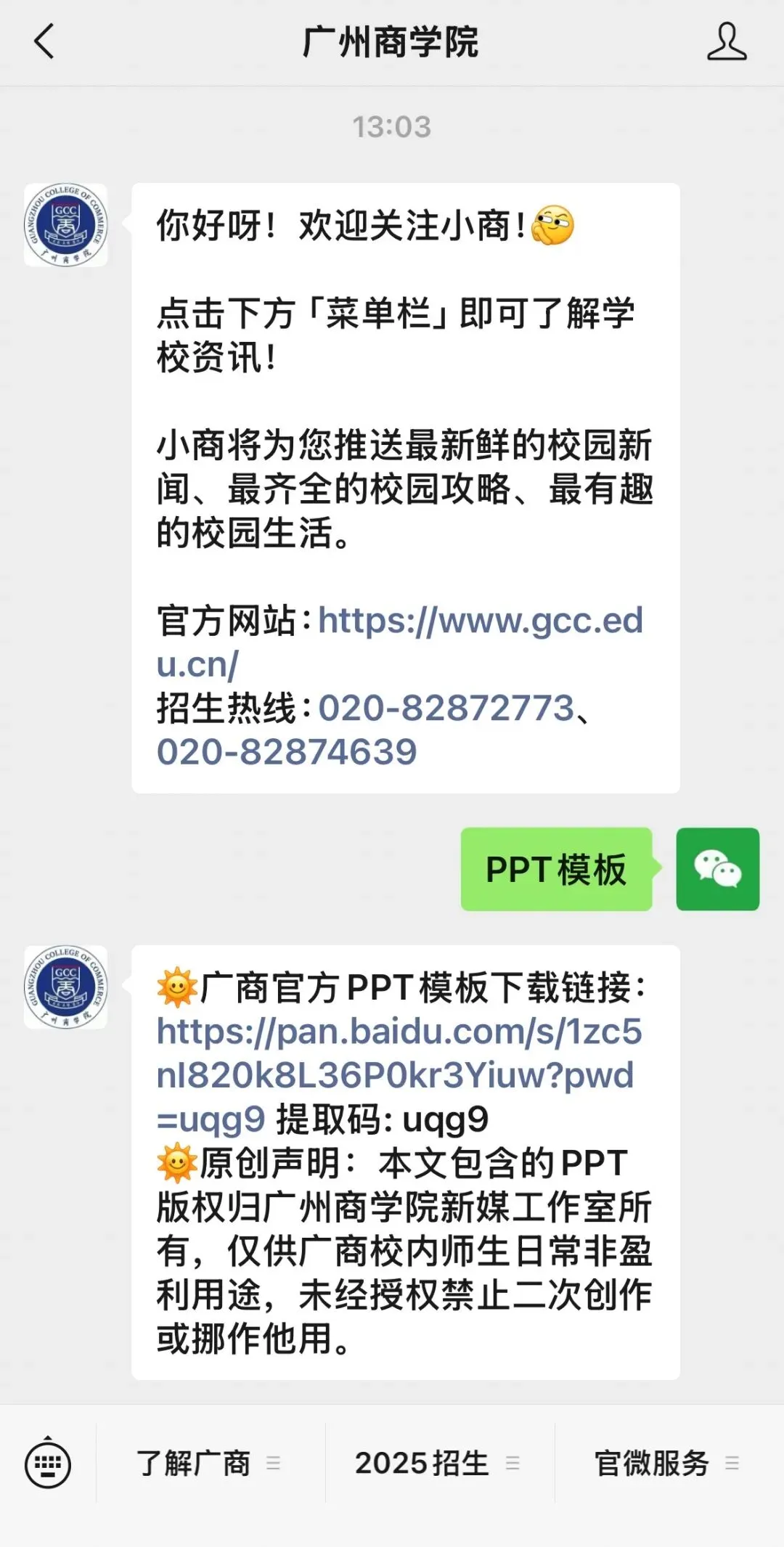 ①关注广州商学院官方微信公众号
