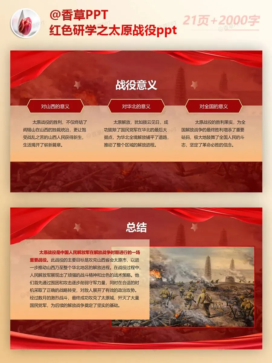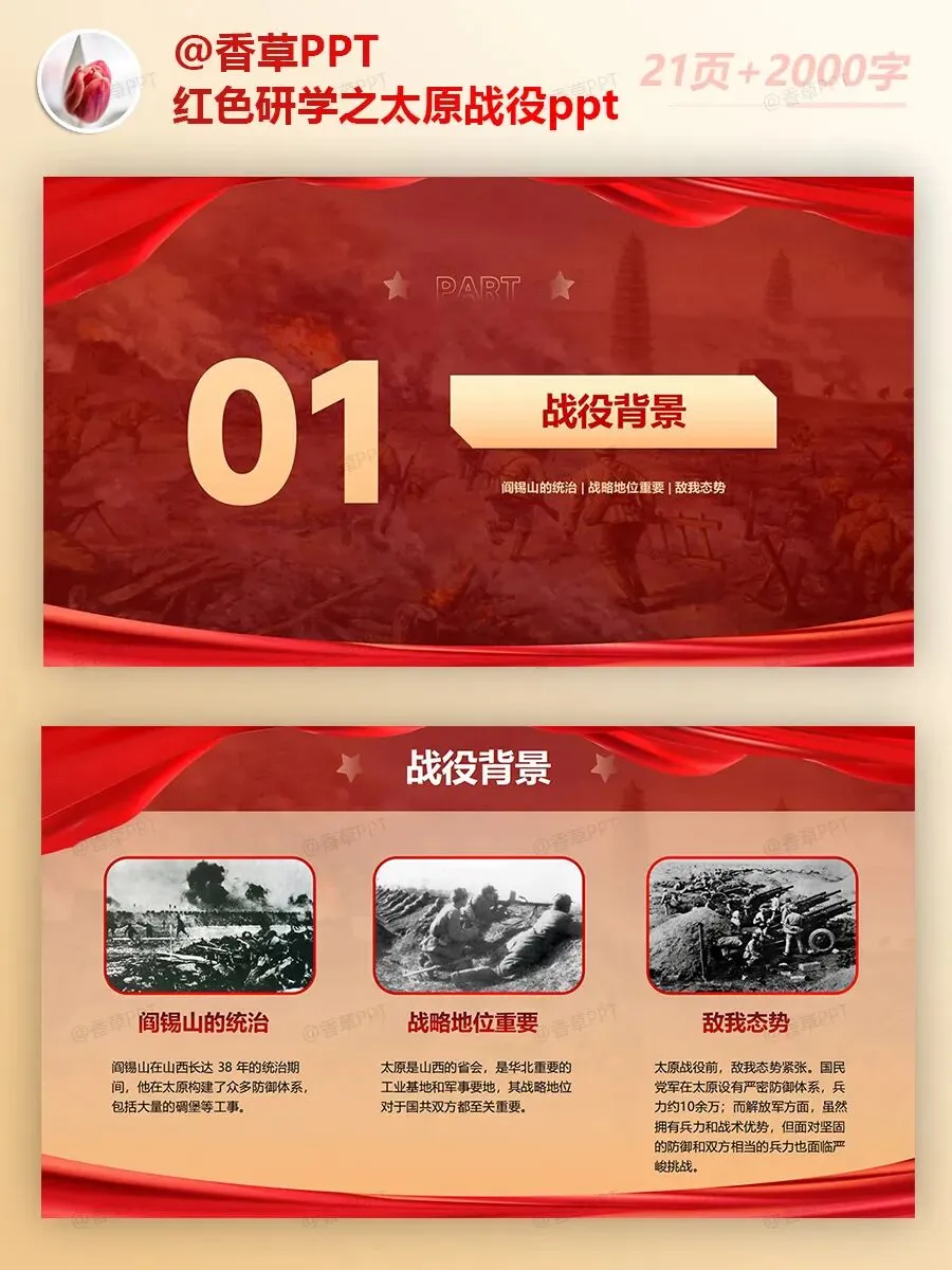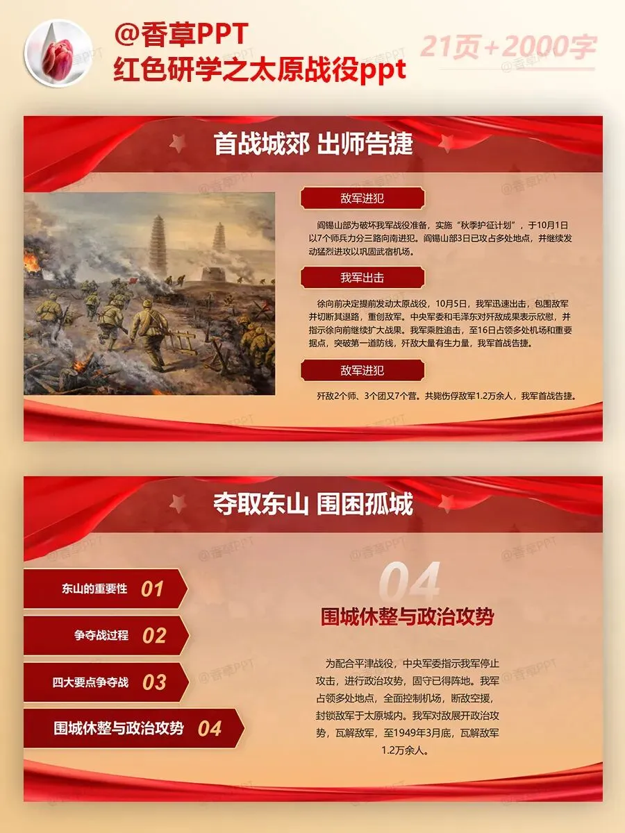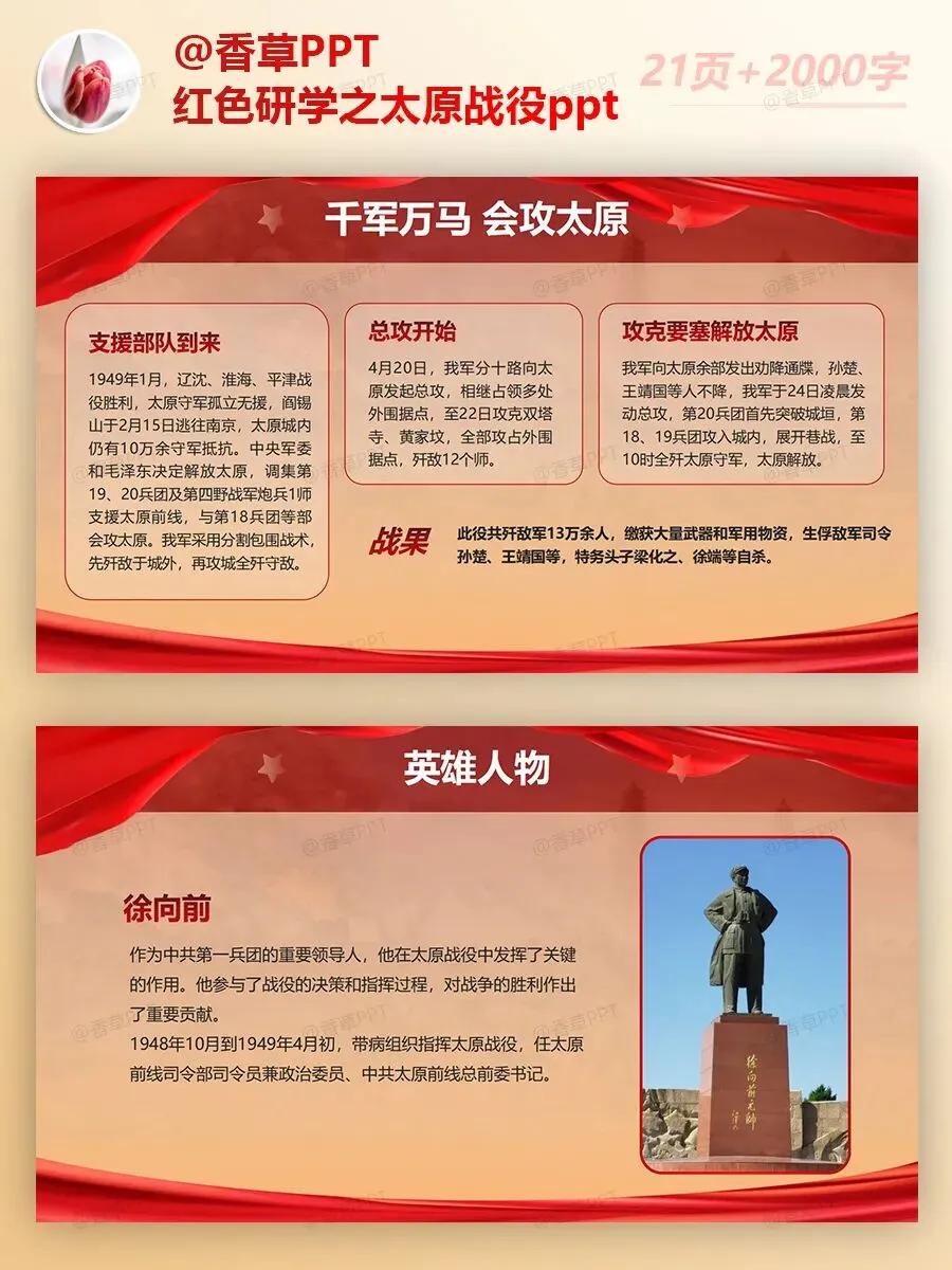 红色研学之太原战役PPT分享,共21页,文字稿2000字,图文均可编辑修改