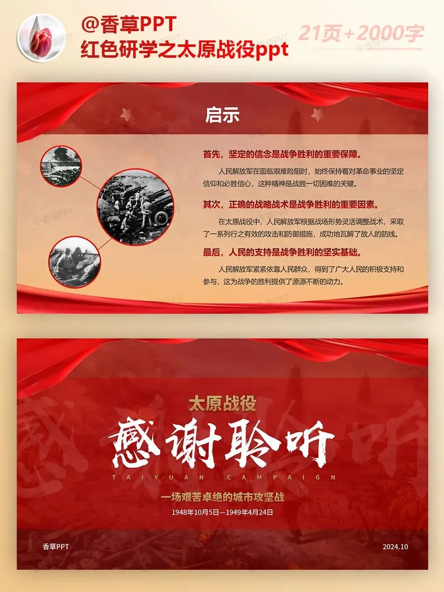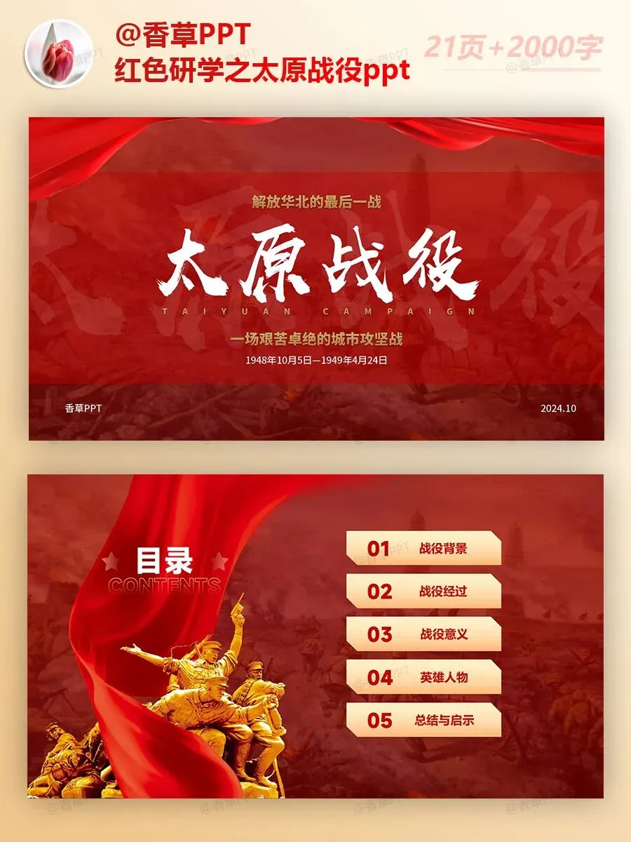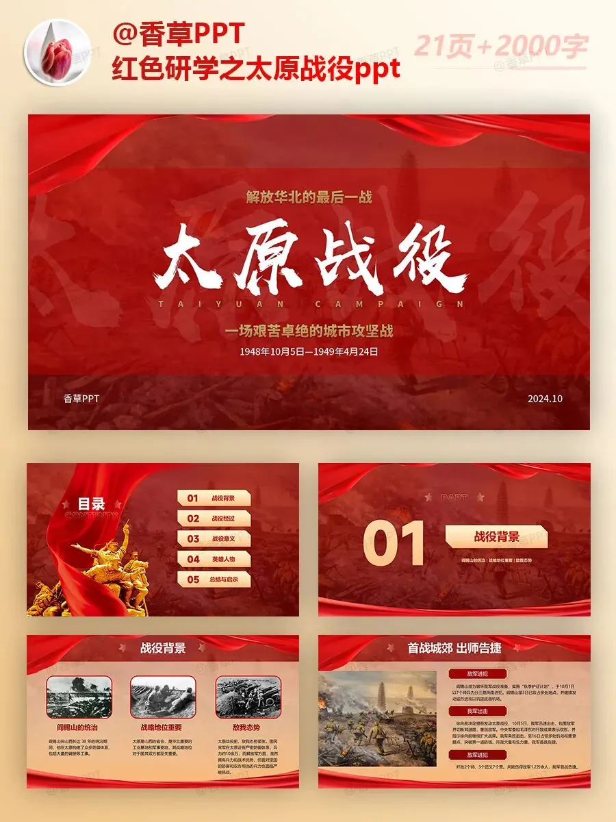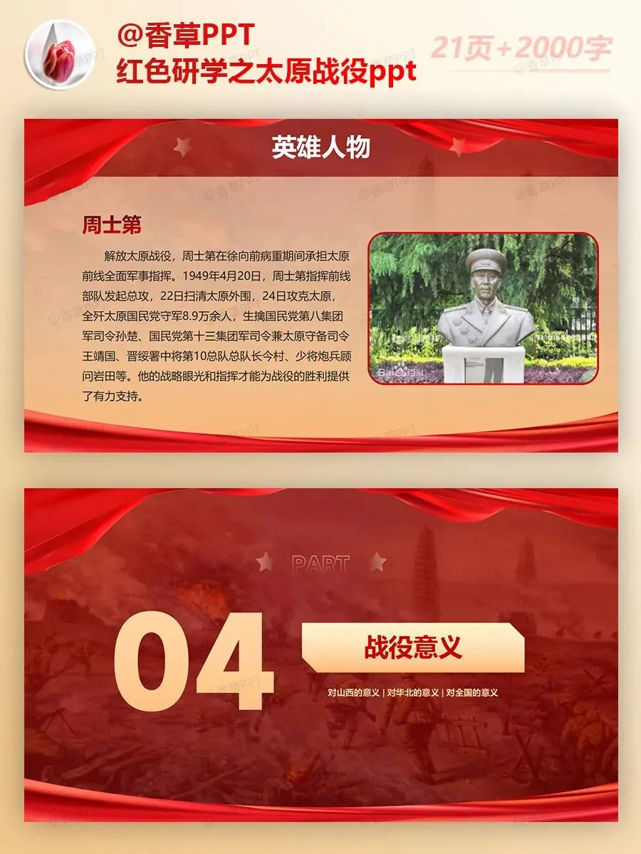 红色研学之太原战役PPT分享,共21页,文字稿2000字,图文均可编辑修改
