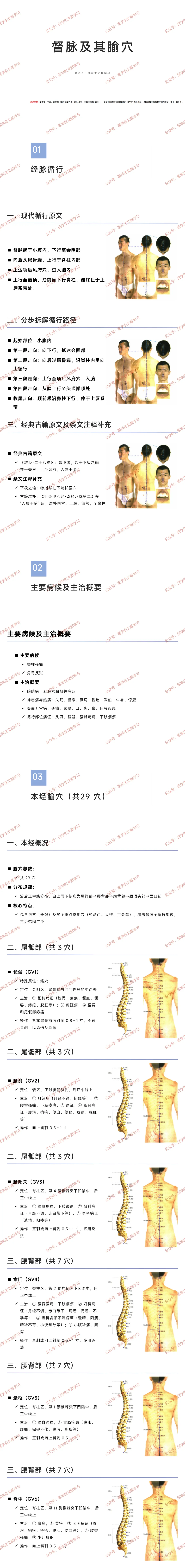 分布:后正中线,尾骶部→腰背部→胸背部→颈项头部→面口部