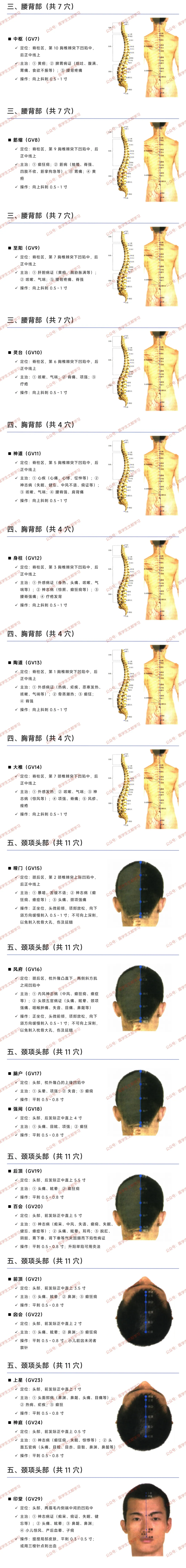 身柱(GV12):第 3 胸椎棘突下,主治外感病、神志病、腰脊痛、疗疮,向上斜刺 0.5~1 寸