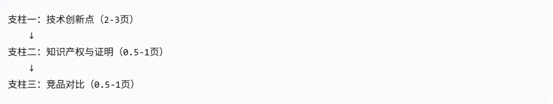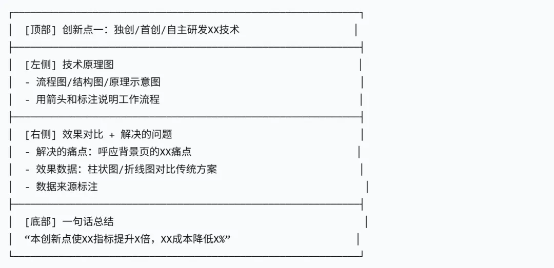 总页数控制在4页以内,每个支柱都要有“证据”支撑。3.2 支柱一:技术创新点(最核心的部分)